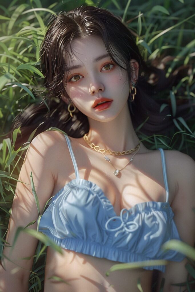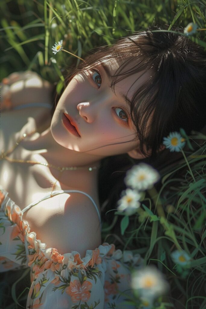 22-year-old Chinese beauty, (wide shot: 1.8), (beautiful:1.8), (Japanese: 1.4), (ultra detailed:2.0), (Cinematic fade: 1.1), (the whole body: 2.0), <lora:momotwice_v1.0:0.850>, ((momo)), Lie down on the grass, Overhead camera, sharp focus, handsome,plump legs, skinny,professional lighting,city, eyelines,gold necklace,rendered eyes,tall body,adult woman,hair ornament,instagram most viewed,official wallpaper, official art,(kpop idol), mini skirt, half-closed eyes,building,((photorealistic painting art by midjourney and greg rutkowski)),((supermodel)), --ar 2:3