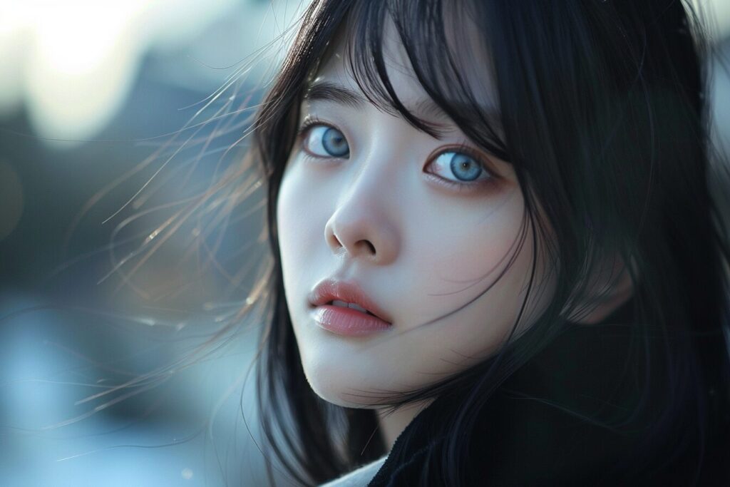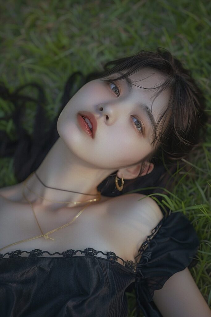 19-year-old Korean beauty, (wide shot: 1.8), (beautiful:1.8), (Japanese: 1.4), (ultra detailed:2.0), (Cinematic fade: 1.1), (the whole body: 2.0), masterpiece, best quality, 1girl, aqua eyes, black hair, closed mouth, outdoors, solo,(((upon body))), alluring, clean, beautiful face,pure face, pale skin, --ar 3:2