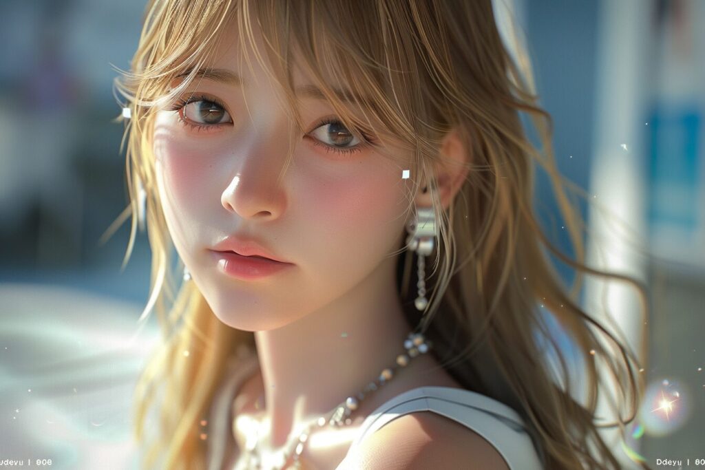 17-year-old Japanese beauty, (wide shot: 1.8), (beautiful:1.8), (Japanese: 1.4), (ultra detailed:2.0), (Cinematic fade: 1.1), (the whole body: 2.0), masterpiece,best quality,official art, extremely detailed CG unity 8k wallpaper, absurdres, incredibly absurdres, huge filesize, ultra-detailed, highres, extremely detailed, beautiful detailed girl,((detailed face,perfect face)), (extremely detailed eyes),((looking at viewer)),(real person,photograph),cute,1girl,((upper body portrait)),dispatchxtwice, skirt, blonde hair, long hair,((smile)), looking at viewer, white shirt, jewelry, long sleeves, dahyunnie, <lora:xelors_TwiceDahyun_v1.0:0.8>, --ar 3:2