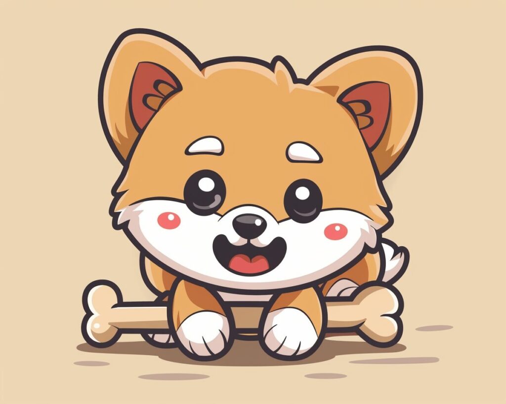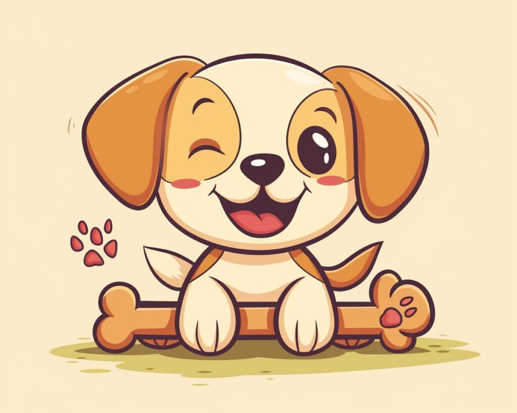 使用したプロンプトはこちら▼ <prompt> cute dog with a bone cartoon style --ar 5:4 --style raw