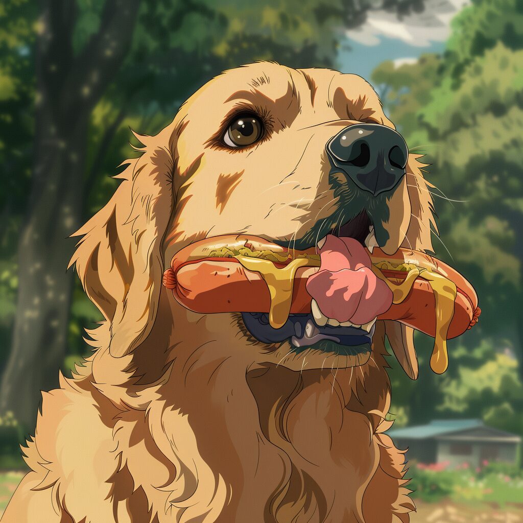 使用したプロンプトはこちら▼ <prompt> a dog eating a hot dog in 1970 anime style