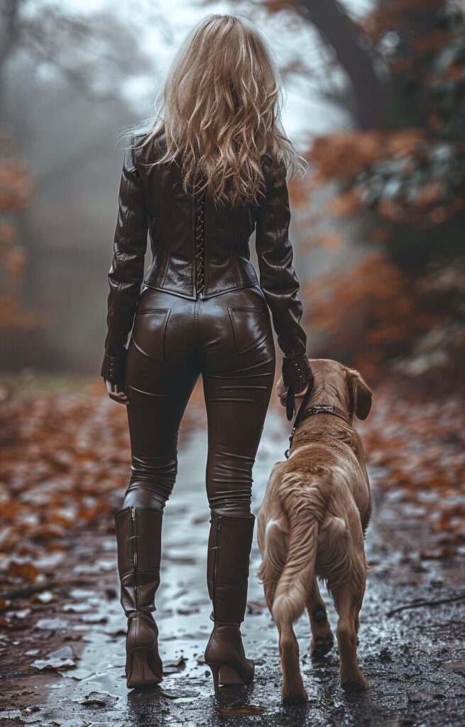 使用したプロンプトはこちら▼ <prompt> full body,Best quality, great work, pixel perfect, rich performance, 8K HD wallpaper, domineering hostess, extreme slender high heels, small leather jacket, small leather pants, shot from the back, metal chain dog leash, chain dog lock , dog walking, dog walking, dog following, walk in the park, metal chain, no one, realistic style, attention to detail, clean empty background, visual shot, confident expression, outdoors, exquisite clothing, cinema lighting, incredible, precise Installation, rich details, perfect picture quality, long-range shooting, telephoto lens, high-heeled leather boots 8K, UE5, high-definition wallpaper --ar 9:14 --stylize 860