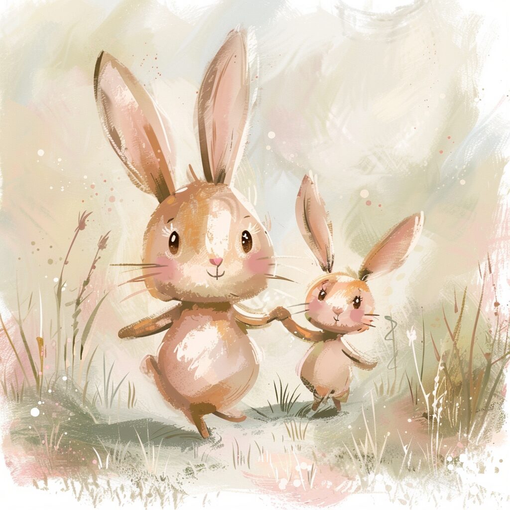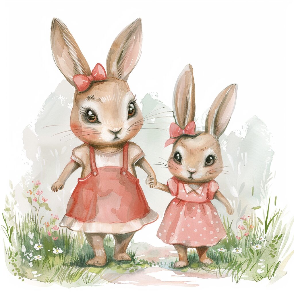 使用したプロンプトはこちら▼ <prompt> A happy memory of a mother bunny and her child walking in a park and holding hands, mother's day illustration, happy bunnies, both bunny smiling, isolated on a white background, in style of digital airbrush, soft brushstrokes, soft pastel colors, adorable eyes, cute, rosy cheeks, childlike innocence and charm, wimmelbilder