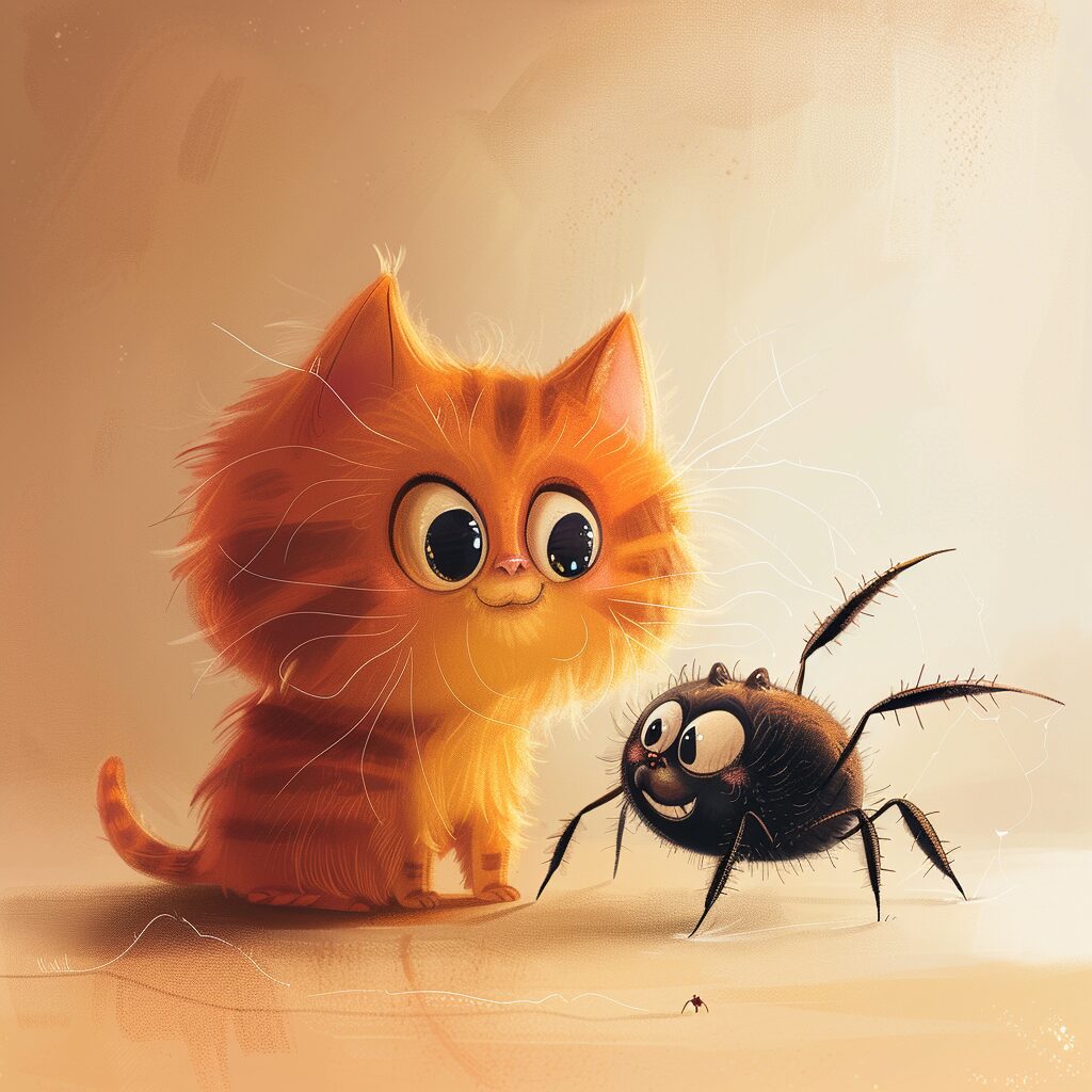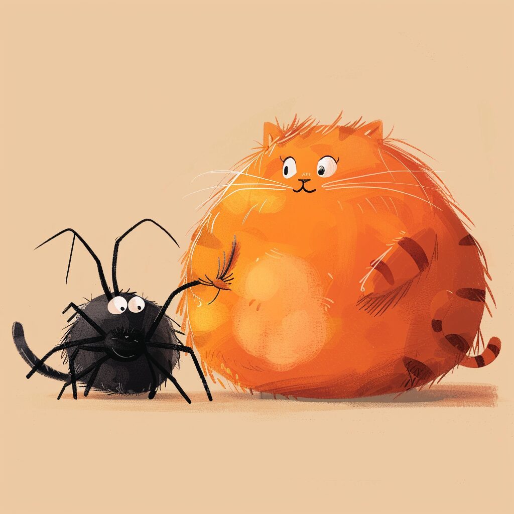 使用したプロンプトはこちら▼ <prompt> cute fat orange cartoon cat and cute cartoon spider being best friends, v6.0