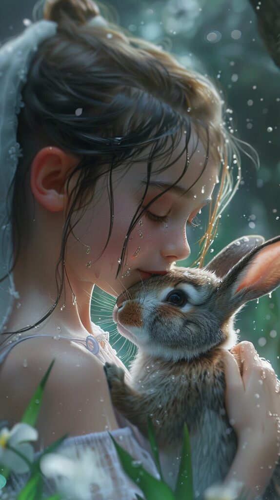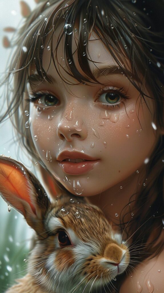 使用したプロンプトはこちら▼ <prompt> girl and rabbit,eyes are watering, Disney Style --ar 9:16 --stylize 250