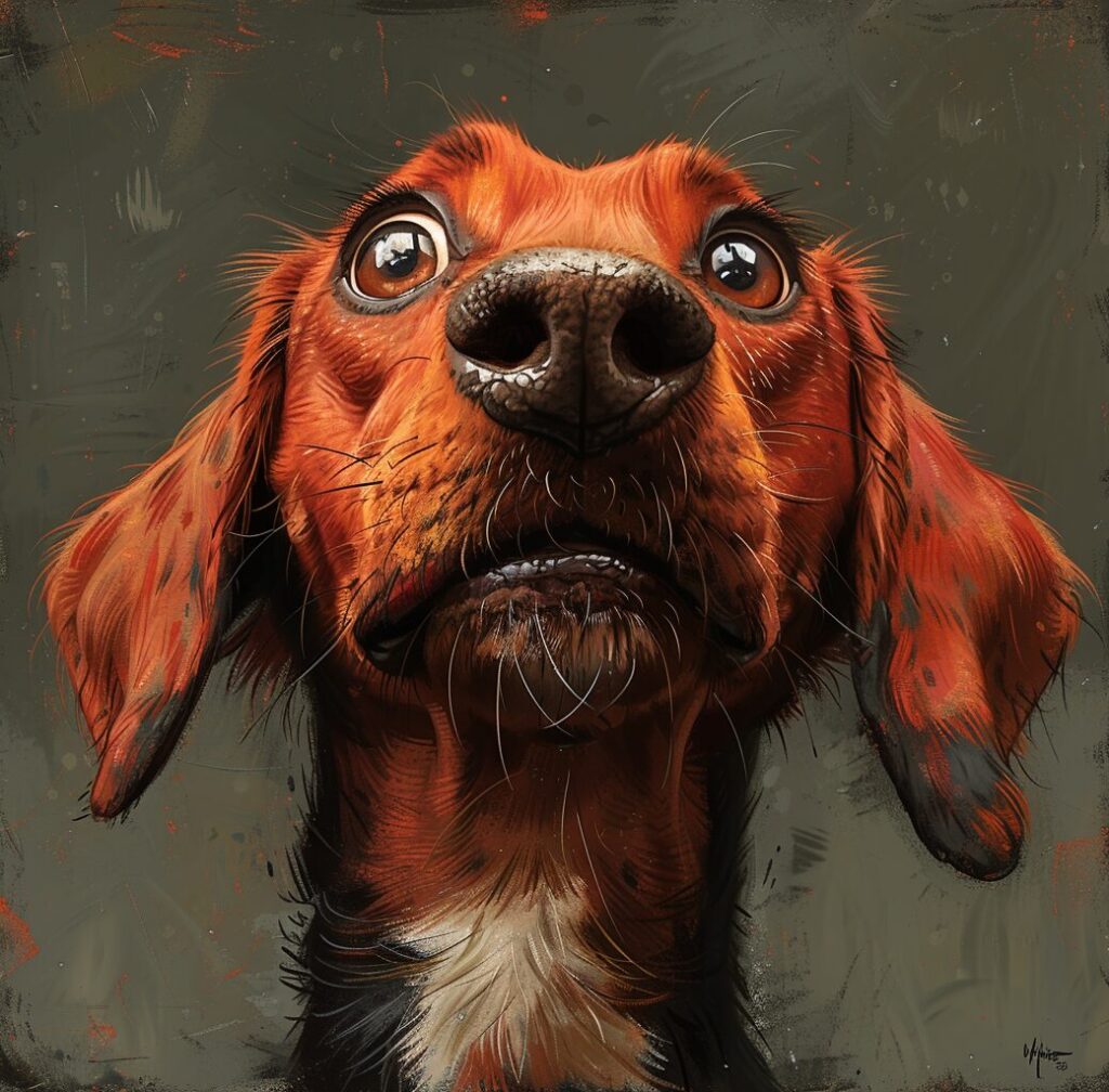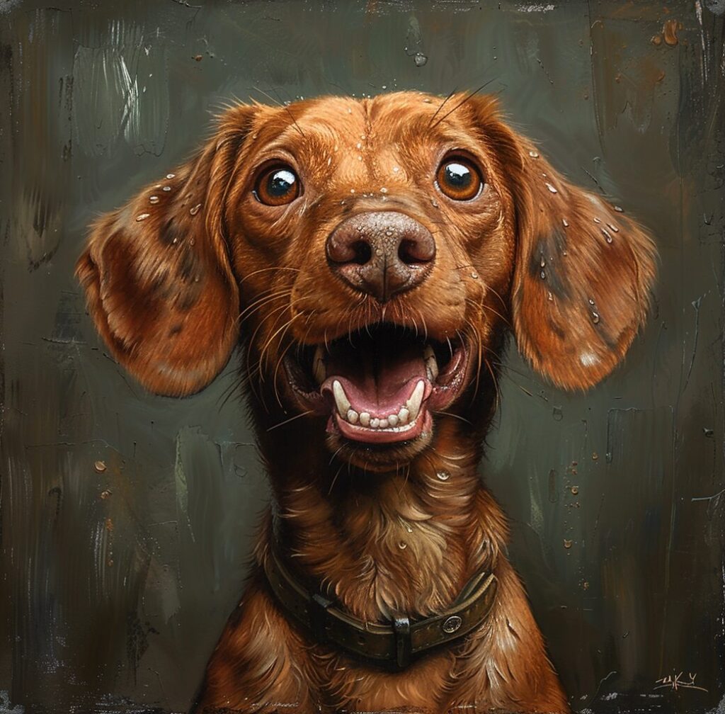 使用したプロンプトはこちら▼ <prompt> an illustration of a foxred vizsla-dachshund mix with a white pattern on his chest and a chestnut nose with glossy hair, in the style of whimsical children's book illustrator, grainy, black and white photos, doug hyde, wilhelmina weber furlong, emotional expressions,brushing his teeth, rough textures --ar 74:73 --stylize 750
