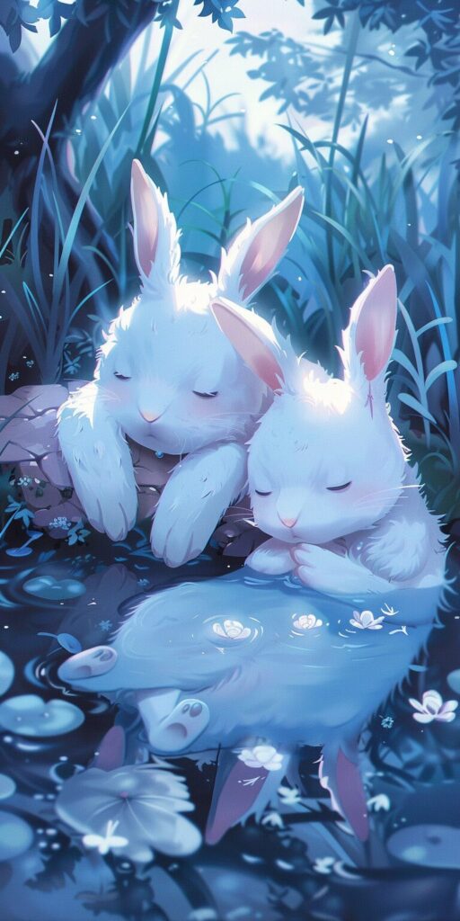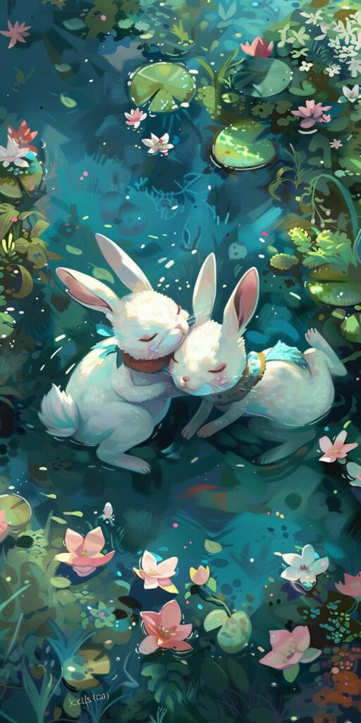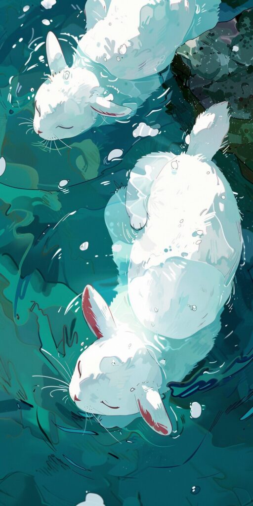 使用したプロンプトはこちら▼ <prompt> two white characters laying on top of water, in the style of fairy kei, train graffiti focus, #screenshotsaturday, comic strip, soft, dreamy landscapes, depictions of animals, bunnycore --ar 1:2