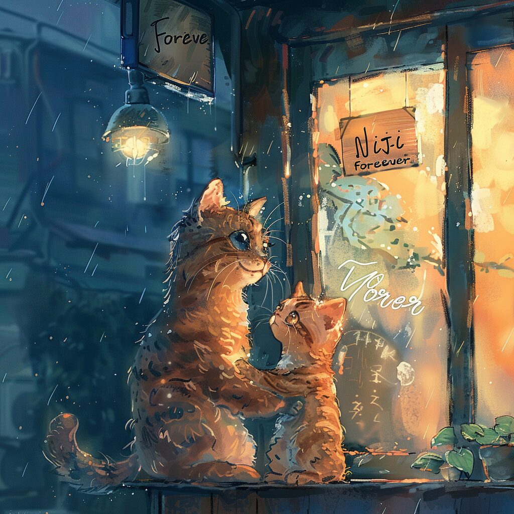 使用したプロンプトはこちら▼ <prompt> a cat say "Niji Forever"