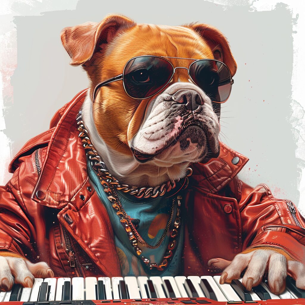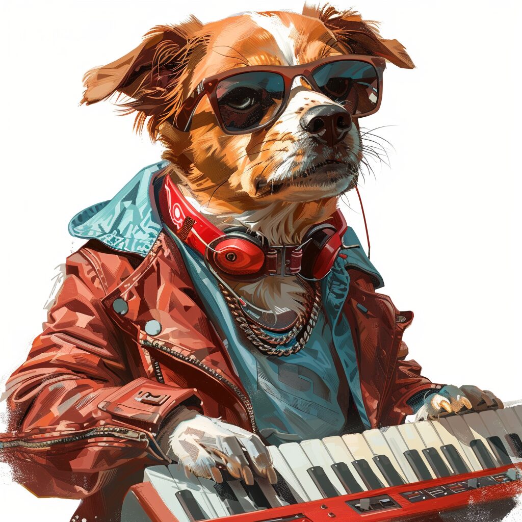 使用したプロンプトはこちら▼ <prompt> dog rockabilly, t-shirt design, rockstar, keyboard player, ivanovich pimenov, 8k, 3d, 32k uhd, WHITE BACKGROUND --stylize 250