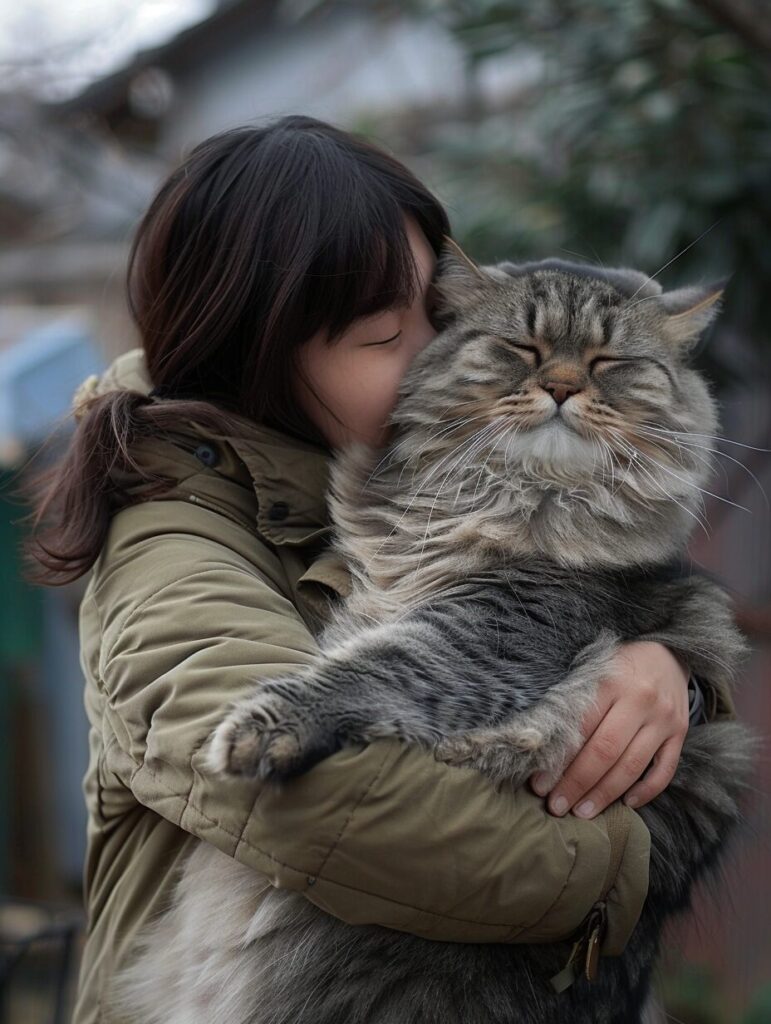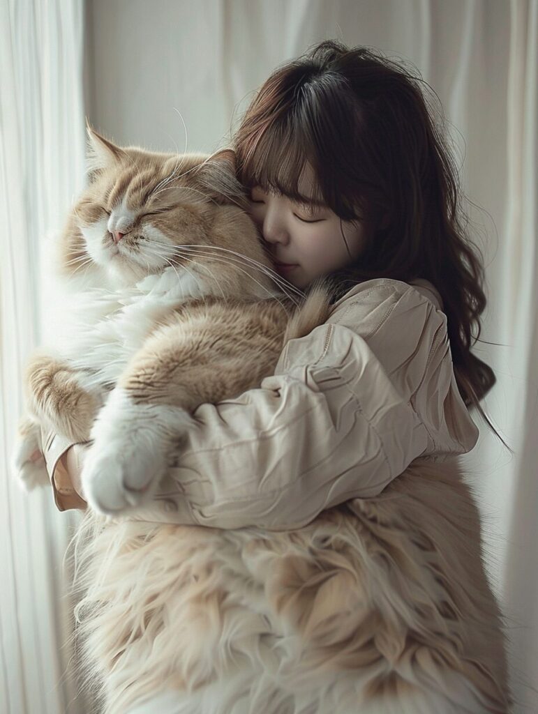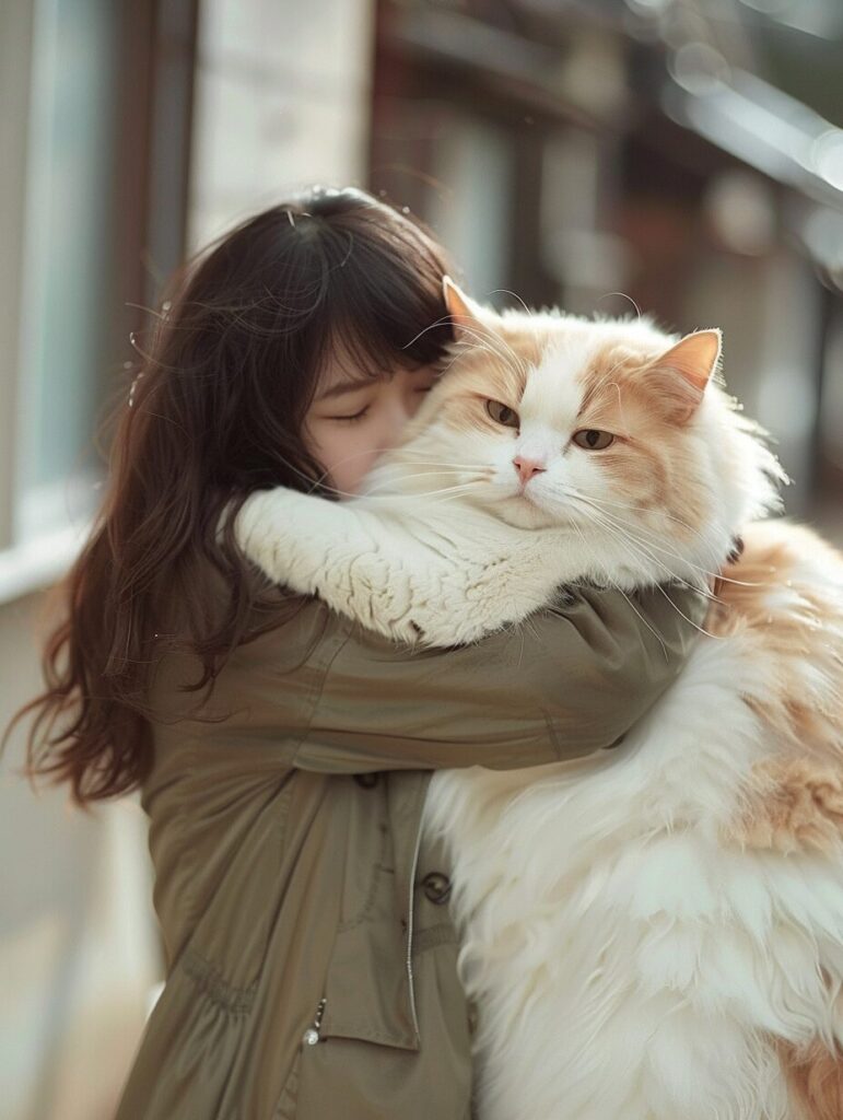 使用したプロンプトはこちら▼ <prompt> a real-life Japanese girl in her 20s in casual clothing hugging a giant human size cat --ar 3:4