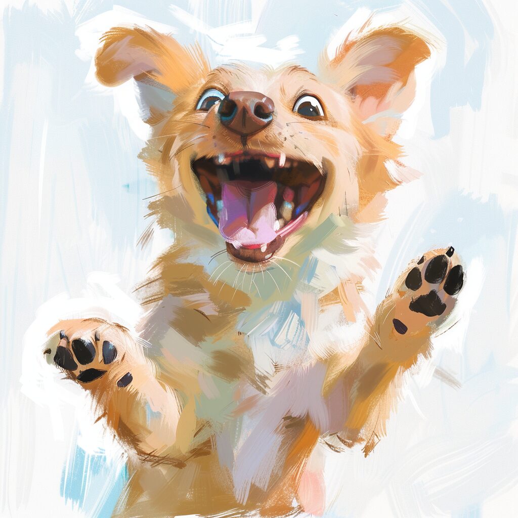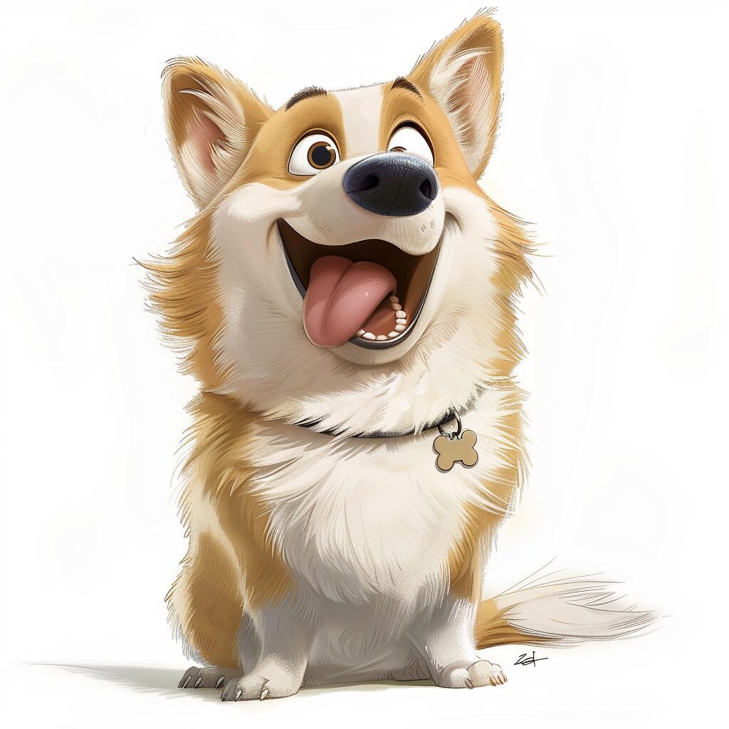 使用したプロンプトはこちら▼ <prompt> a dog making a crazy smile, crazy eyes, jovial mood, no background, sunshine and bright day, festive mood, studio ghibli artstyle, cinematic lighting, depth of field, full body shot, ultra wide shot, plain white background, dynamic poses, art by disney, anime illustration, --stylize 50