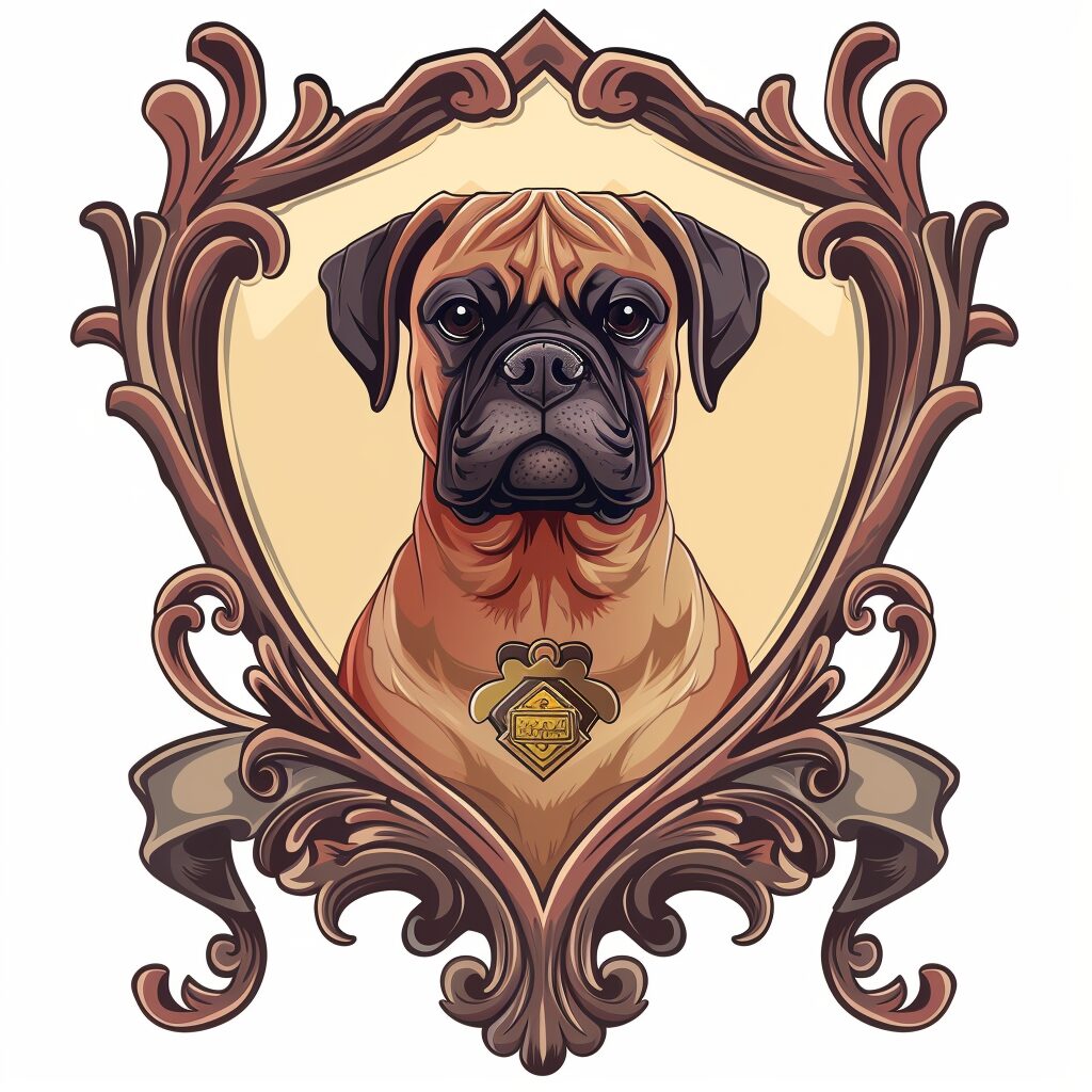 使用したプロンプトはこちら▼ <prompt> paw patrol style coat of arm with a Bullmastiff puppy with small ears