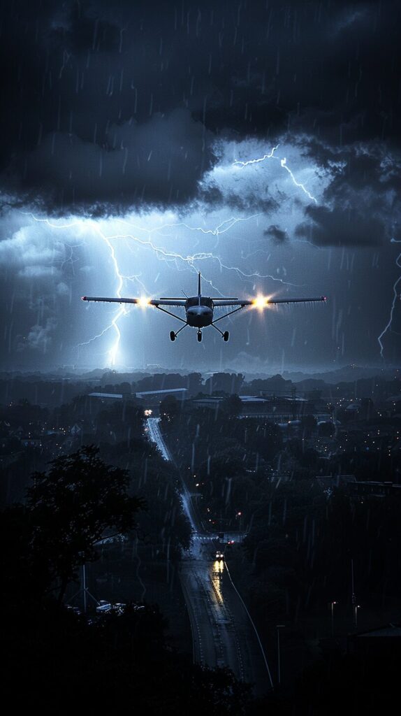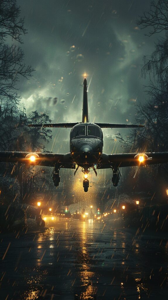 使用したプロンプトはこちら▼ <prompt> Cinematic shot of light aircraft falling down in distance , stormy weather, tunderstorm, lightinging light aircraft, photography, open sky, Scared, Scared, Twilight,Cinematic lighting, Rainy, Stormy, Photography style of Vivian Maier,Wide angle shot, Documentary, analog, intricate details, 8k, sharp, hyperrealistic, hyperdetailed, rule of thirds, --chaos 10 --ar 9:16 --stylize 500