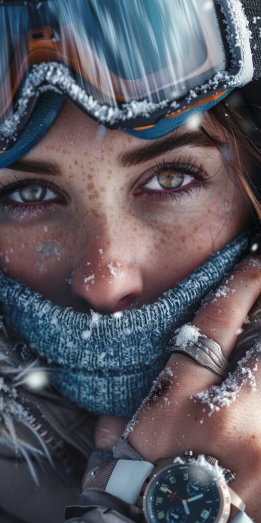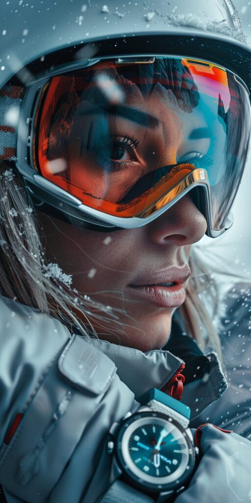 使用したプロンプトはこちら▼ <prompt> Skiing girl, half body,exquisite and beautiful face, with an i watch on her hand, watch focus,close-up of the watch, dynamic skiing, --ar 1:2