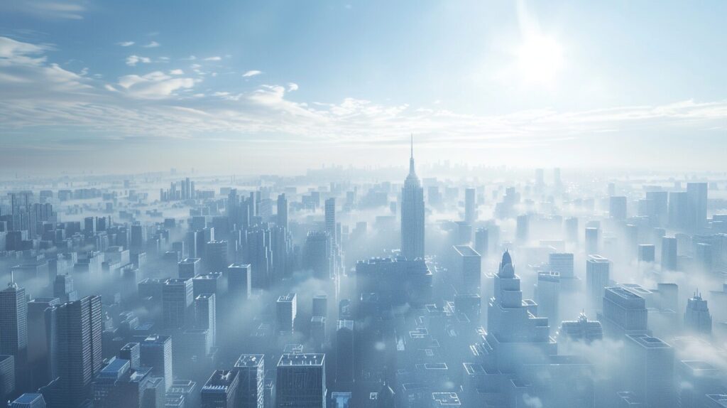使用したプロンプトはこちら▼ <prompt> city at foggy day