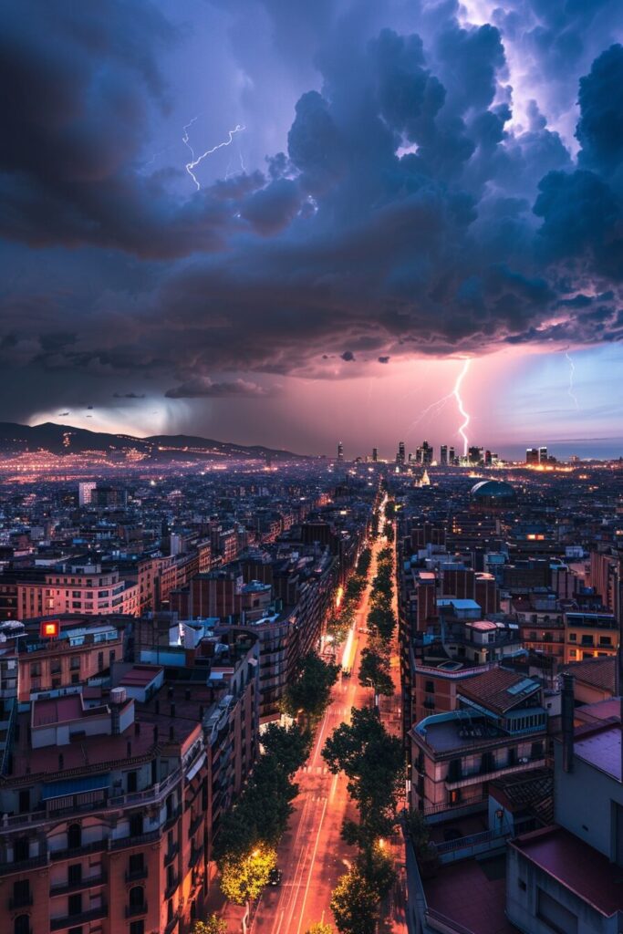 使用したプロンプトはこちら▼ <prompt> cinematic shot of Barcelona under a thunder and lightning. Challenging moment --ar 2:3
