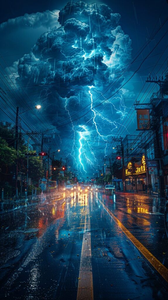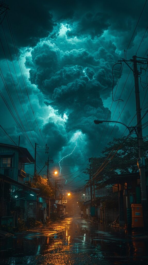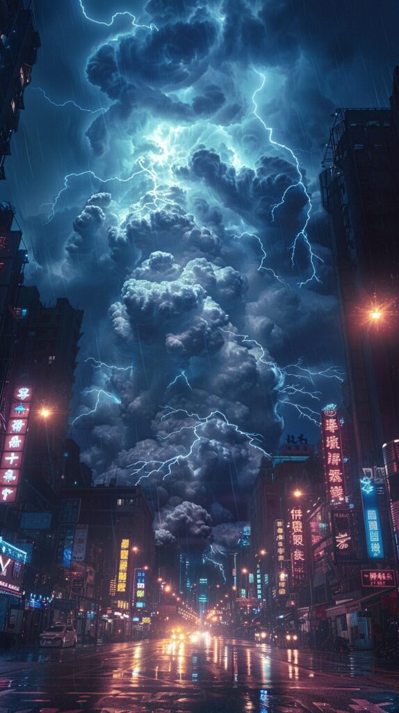 使用したプロンプトはこちら▼ <prompt> On the streets of Taiwan, there are dark clouds and thunder in the sky, 8K quality, ultra-realistic, photography, photo, ultra-clear. --ar 9:16 --stylize 750