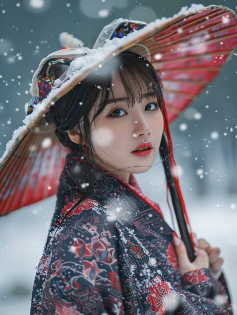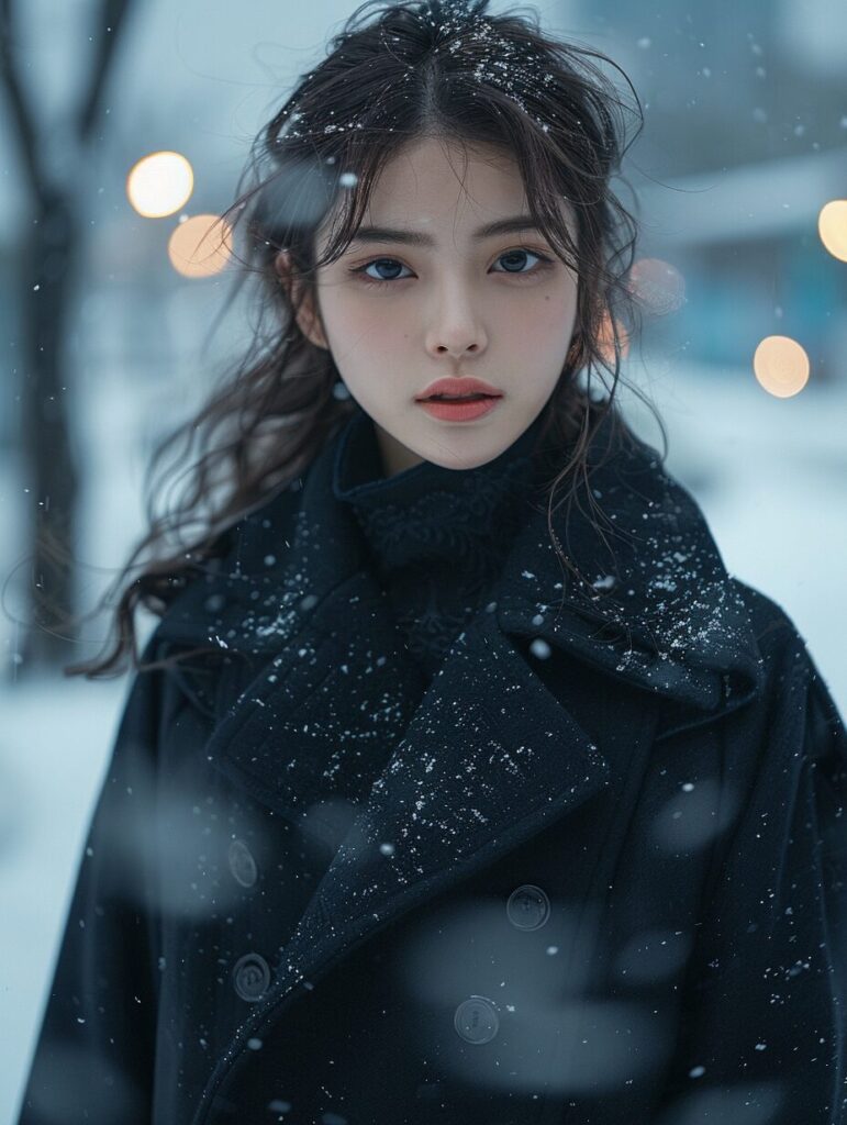 使用したプロンプトはこちら▼ <prompt> Portrait photo of an oriental girl standing in the snow Fine HD --ar 3:4