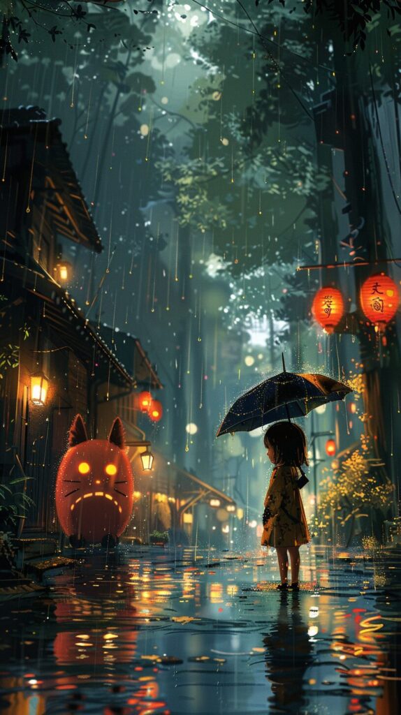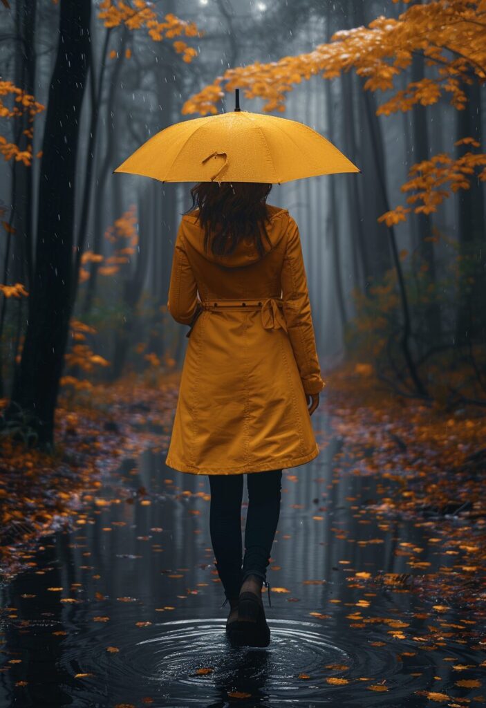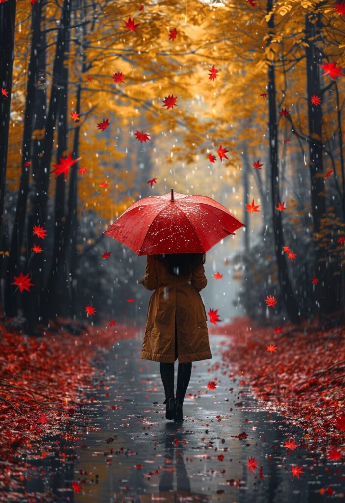 使用したプロンプトはこちら▼ <prompt> Uma mulher andando na chuva com um guarda-chuva, clima de outono --ar 11:16 --stylize 1000