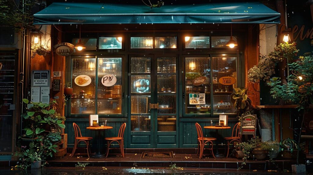 使用したプロンプトはこちら▼ <prompt> In side coffee shop style Italian style , big window, after rain, night time, limp, realistic ultra detailed , Canon EOS-1D X MARK II, 8K, Beautiful Lighting, realistic ultra detailed , Canon EOS-1D X MARK II, 8K, Beautiful Lighting, --ar 16:9 --stylize 250