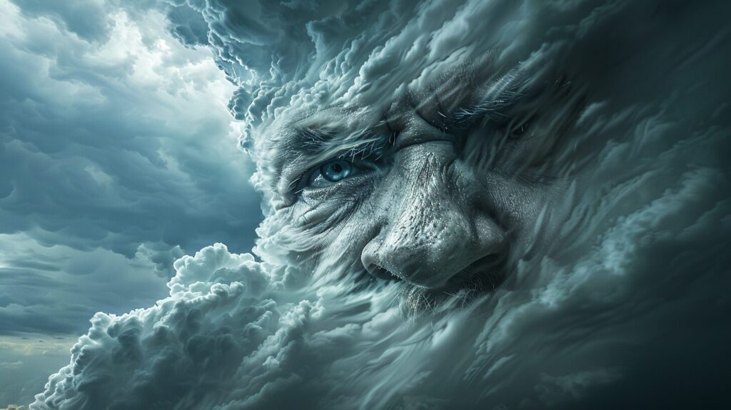 使用したプロンプトはこちら▼ <prompt> An angry shelf - cloud with a human face, --ar 16:9 --stylize 250