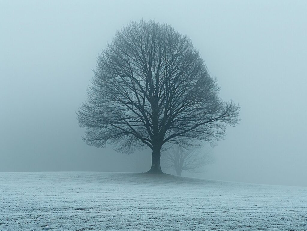 使用したプロンプトはこちら▼ <prompt> park is covered in fog as a few trees stand upright, in the style of nikon d850, uhd image, high quality photo --ar 4:3 --style raw --stylize 750