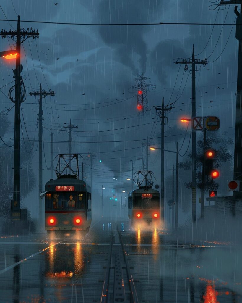 使用したプロンプトはこちら▼ <prompt> Cold rainy day scene from a weird movie by Goro Fujita --ar 4:5