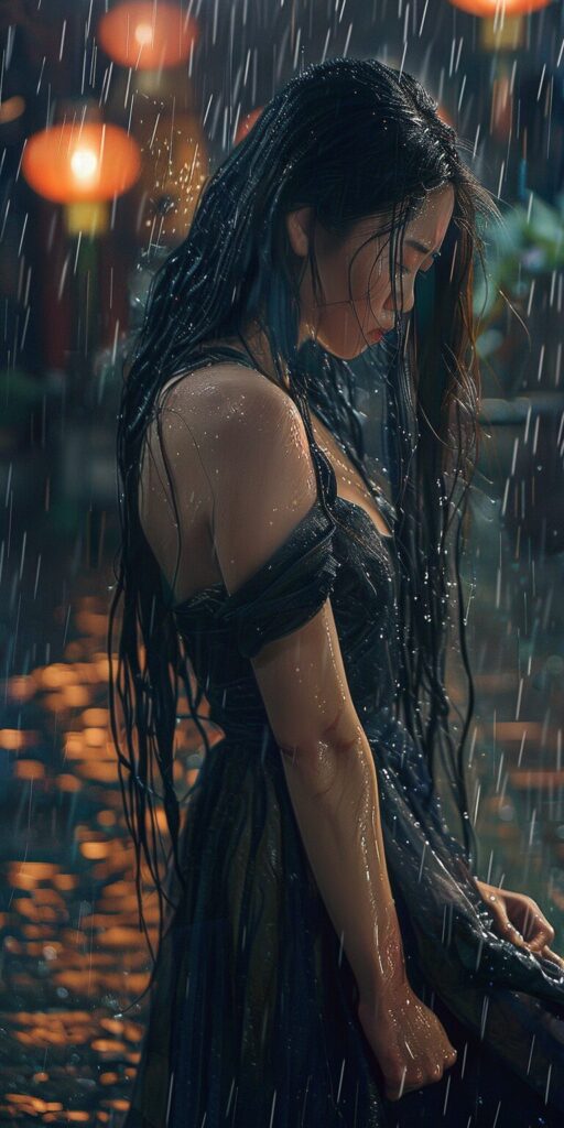 使用したプロンプトはこちら▼ <prompt> A Chinese woman, black wet long hair, crying, in the rain, wet skirt, night, masterpiece, 8K --ar 1:2
