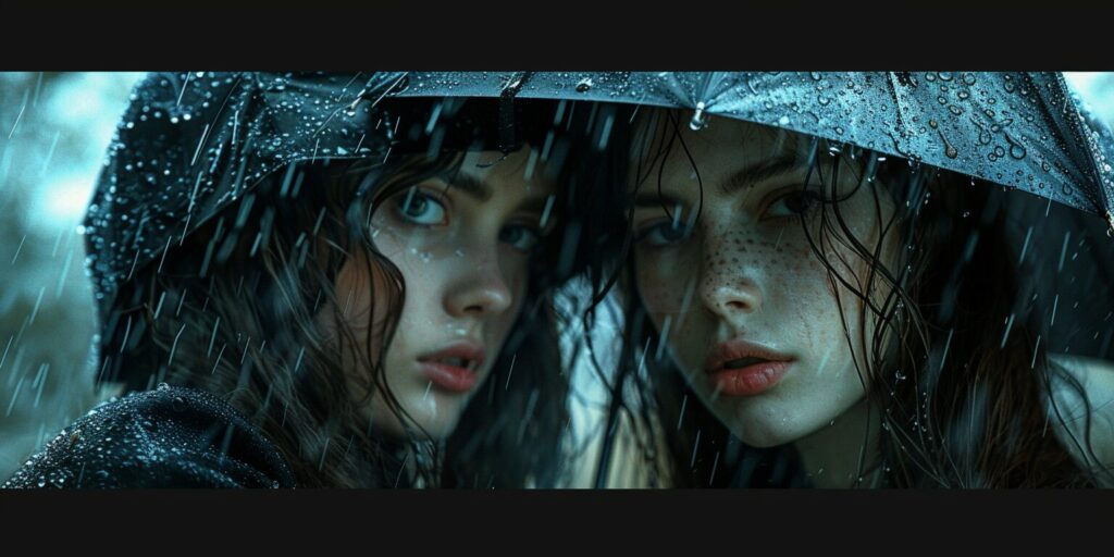 使用したプロンプトはこちら▼ <prompt> photo of women in the rain with umbrella --ar 2:1 --stylize 250