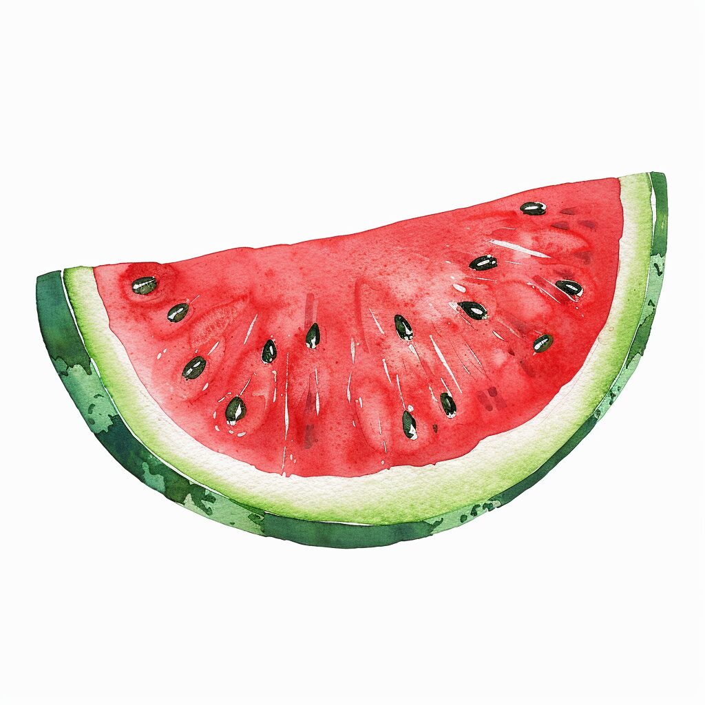 使用したプロンプトはこちら▼ <prompt> slice of watermelon on white background