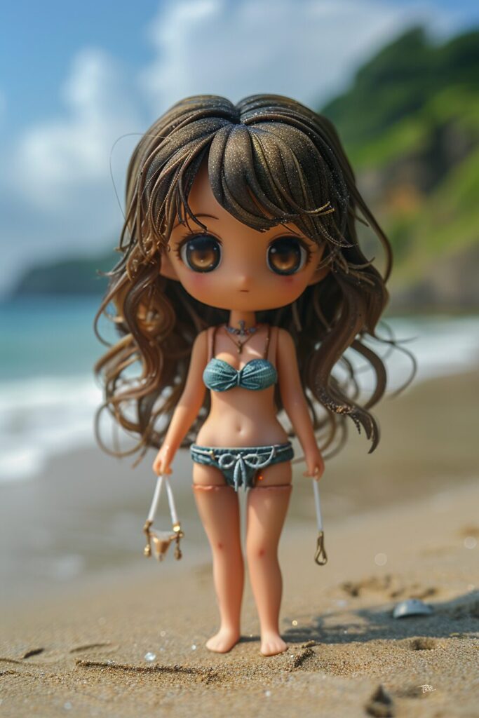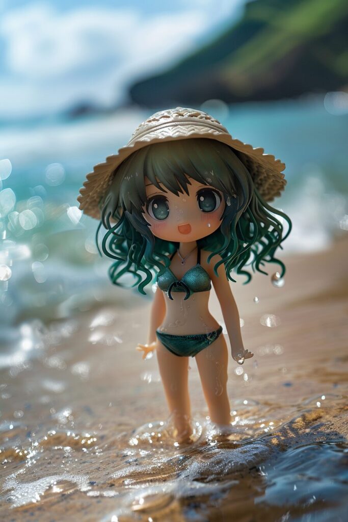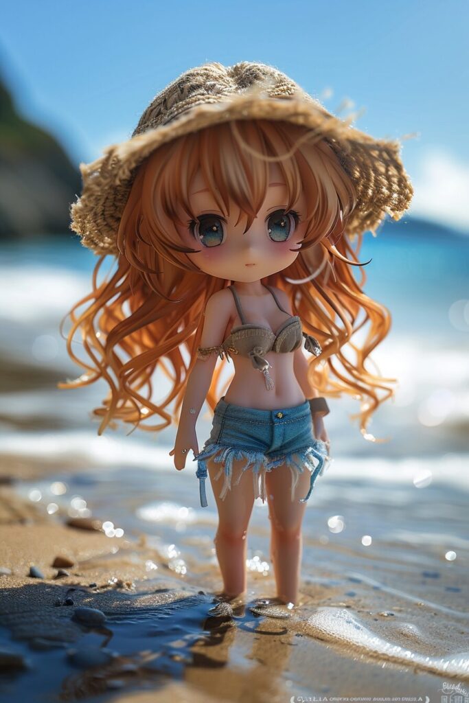 使用したプロンプトはこちら▼ <prompt> chibi irl at the beach detailed photograph --chaos 3 --ar 2:3 --stylize 500