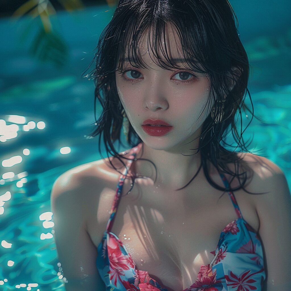 使用したプロンプトはこちら▼ <prompt> Photos of idols wearing Japanese swimsuits