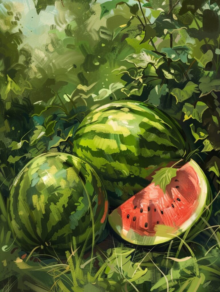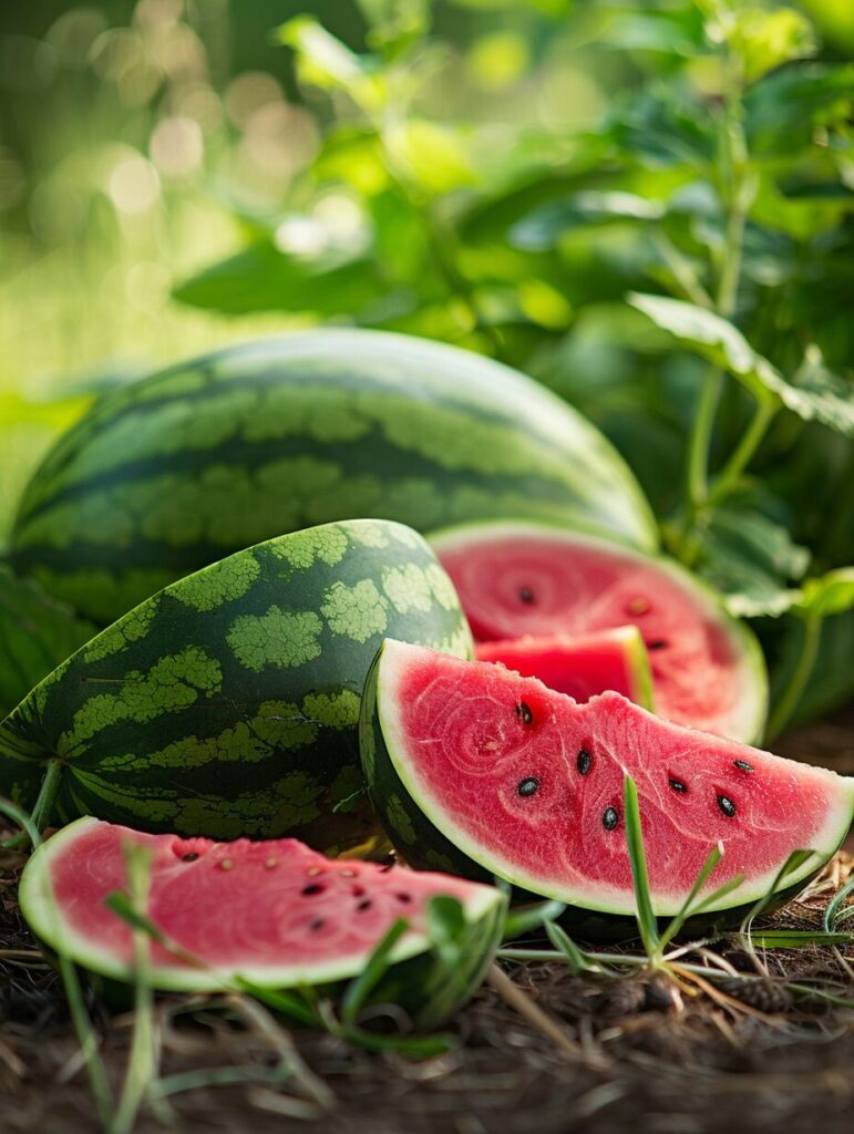 使用したプロンプトはこちら▼ <prompt> watermelon in a farm background setting, --ar 3:4