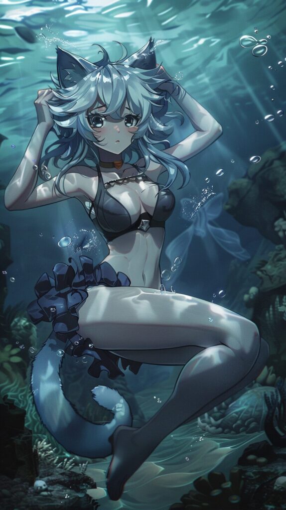 使用したプロンプトはこちら▼ <prompt> Neferpitou anime character from Hunter x Hunter sensual posing under the sea, in the style of mischievous feline motif, catcore, magical girl , botticelli-esque figures --ar 9:16 --style raw