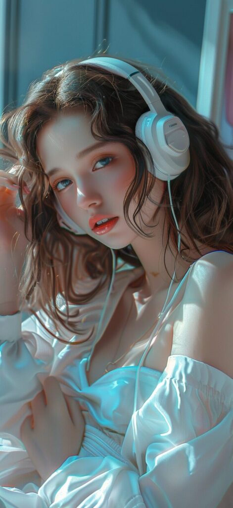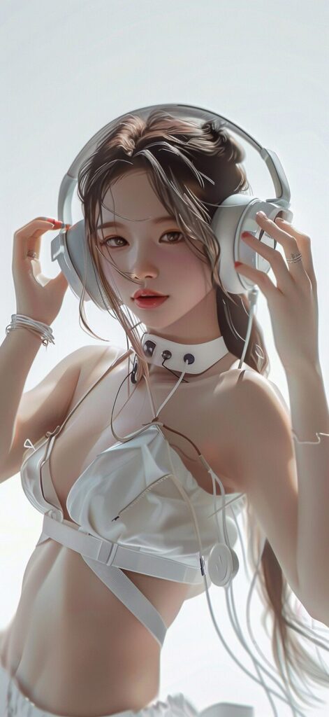 使用したプロンプトはこちら▼ <prompt> a pretty girl wearing headphones and white is posing for a picture, in the style of gongbi, feminine body, shiny/glossy, organic material, heatwave, dullcore, smooth curves --ar 59:128