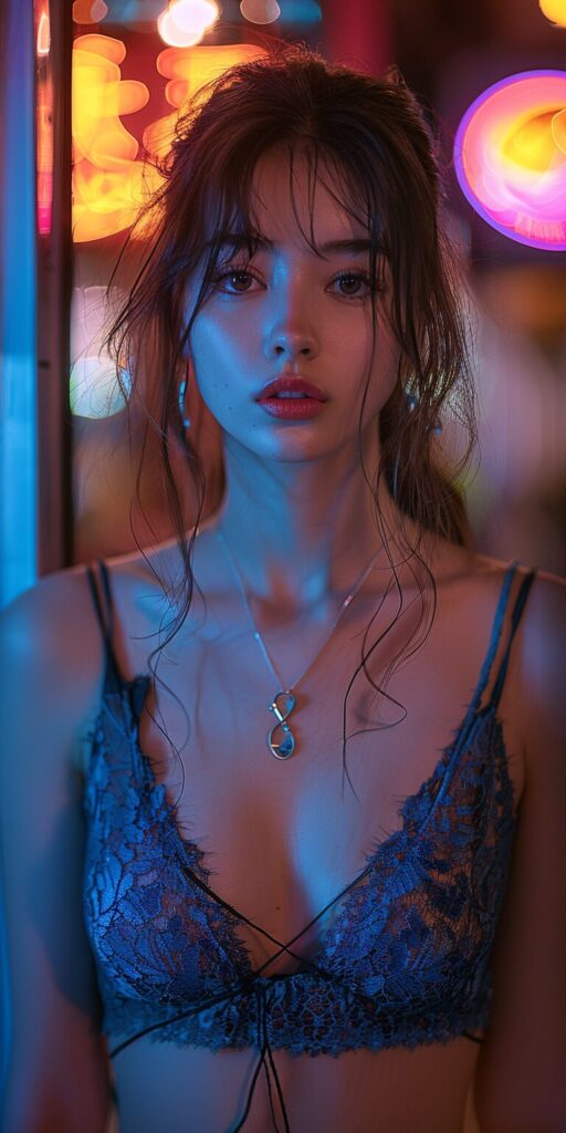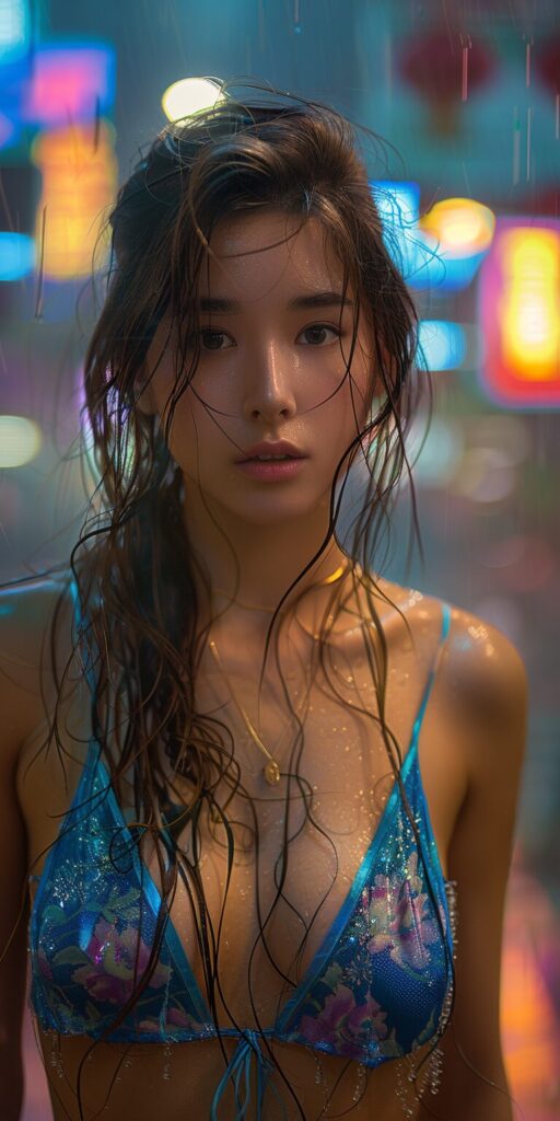 使用したプロンプトはこちら▼ <prompt> an asian girl in a blue and black top in a neon city, in the style of chinapunk, iconic album covers, soft-focus portraits, luke fildes, lightblue and black, exotic, captivating lighting --ar 1:2 --stylize 750