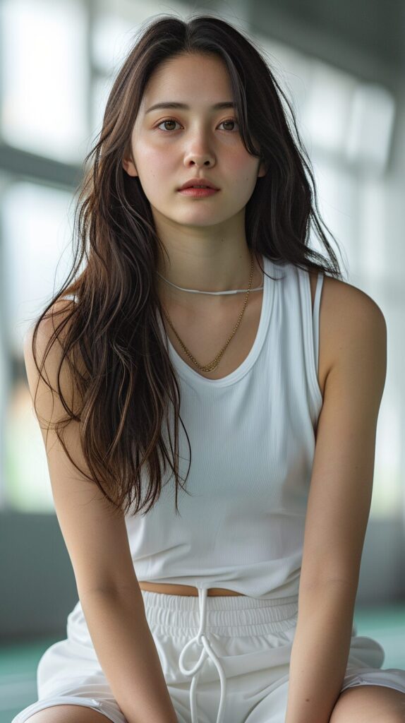 使用したプロンプトはこちら▼ <prompt> 20 year old Asian handsome girl, high school student, good looking, fair skin, black hair, long hair, whole body lying flat on the ground, muscular man, strong pecs, abs, attractive figure, curves, clean, athletic, white sports vest, white sports shorts, white socks, shoes, basketball, basketball court, daytime, background, basketball rack, long view , overhead, anime style, realism, Miyazaki style, bright colors, masculine neo-Cubist style, Pop art-inspired figurative works Realistic hyperdetail rendering, bright color palette,aykut aydogdu, shine/gloss, snapshot realism, Samuels --chaos 20 --ar 9:16 --quality 0.5 --stylize 750