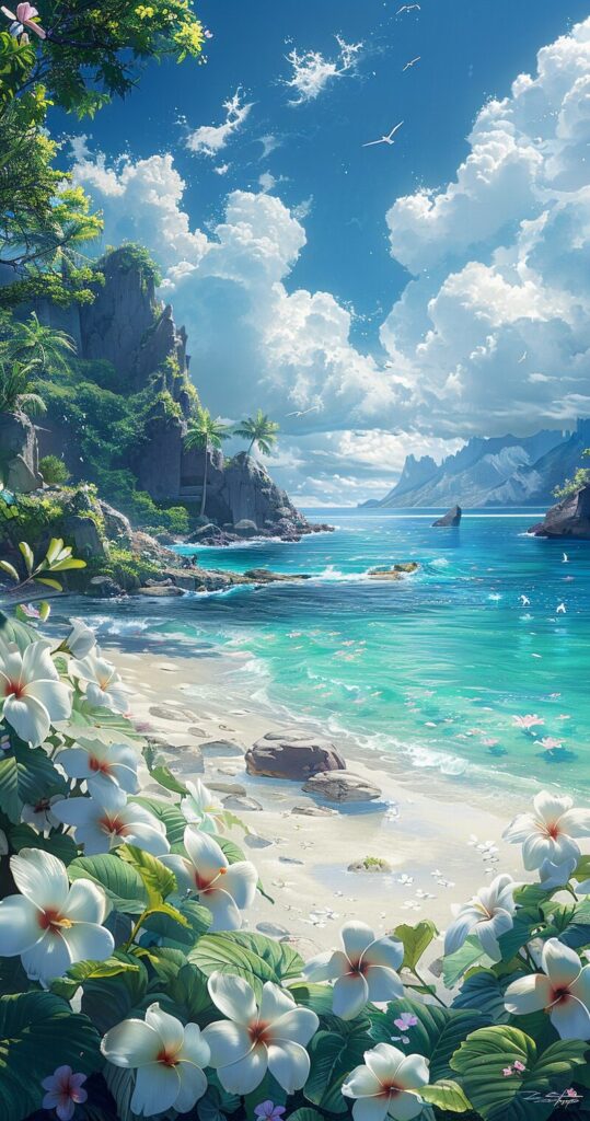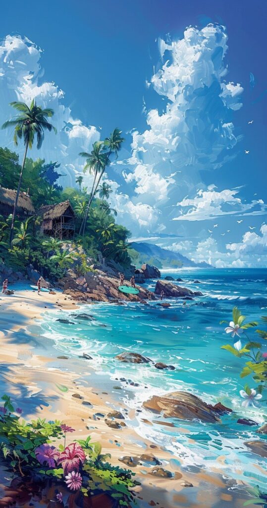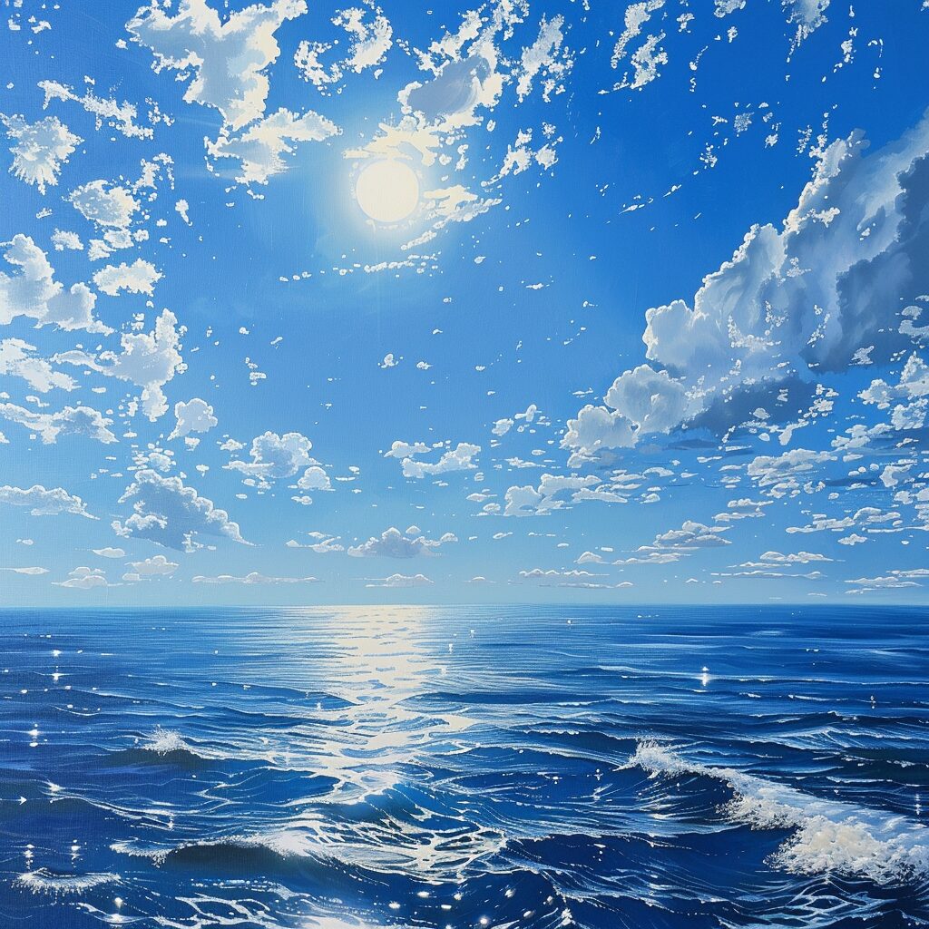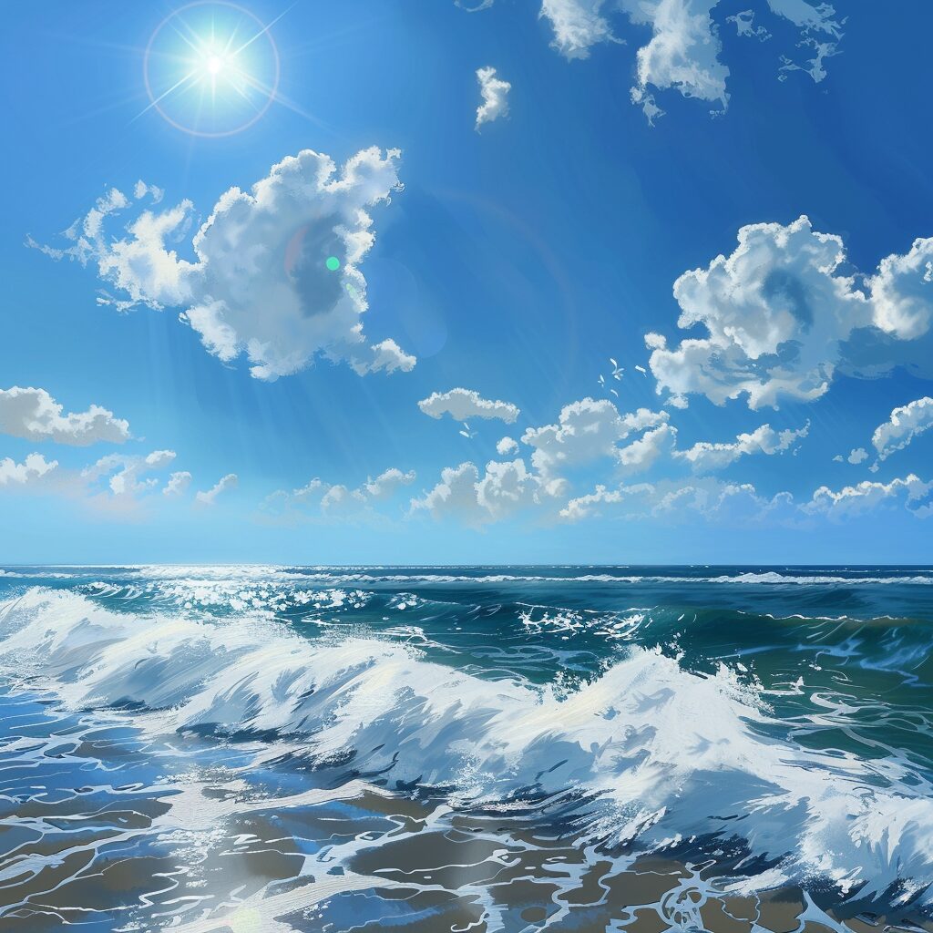 使用したプロンプトはこちら▼ <prompt> highres picture, realistic, blue ocean, blue skies, sunny day