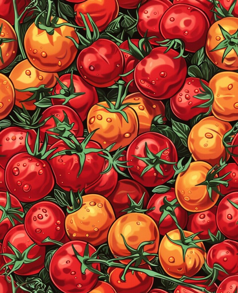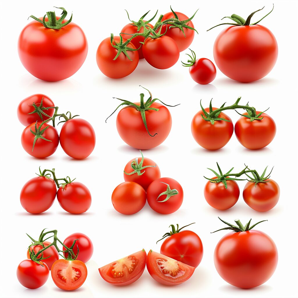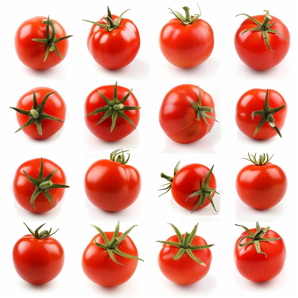 使用したプロンプトはこちら▼ <prompt> collection of tomato isolated on white background --stylize 50
