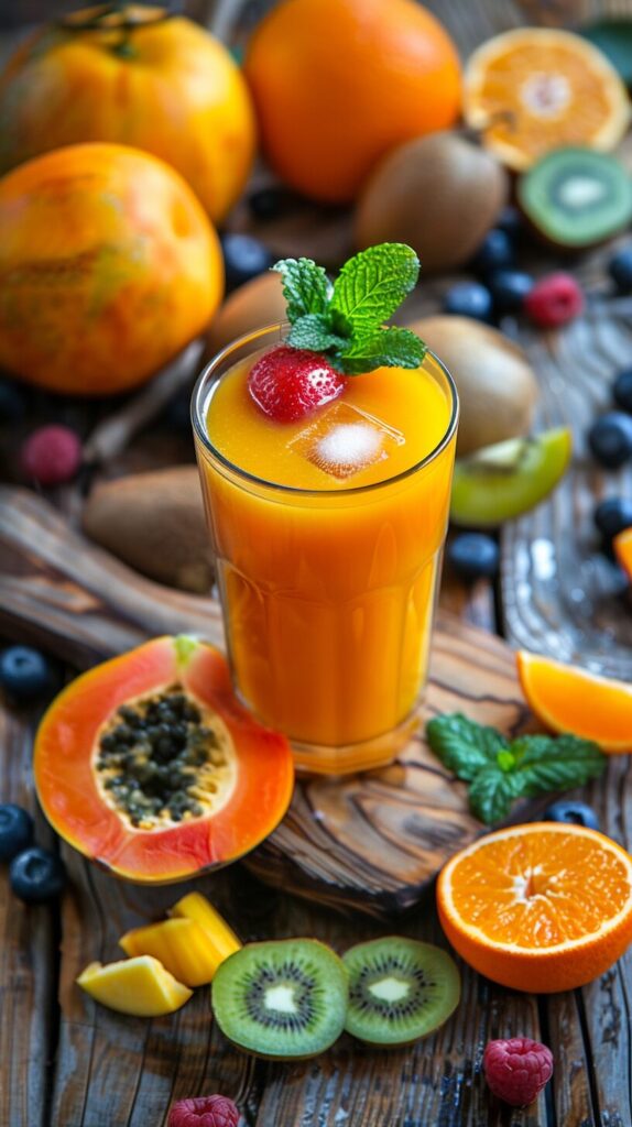 使用したプロンプトはこちら▼ <prompt> fruit,salad juice --ar 9:16