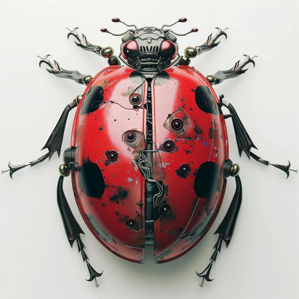 使用したプロンプトはこちら▼ <prompt> ladybug style cyber, on plain white backgound