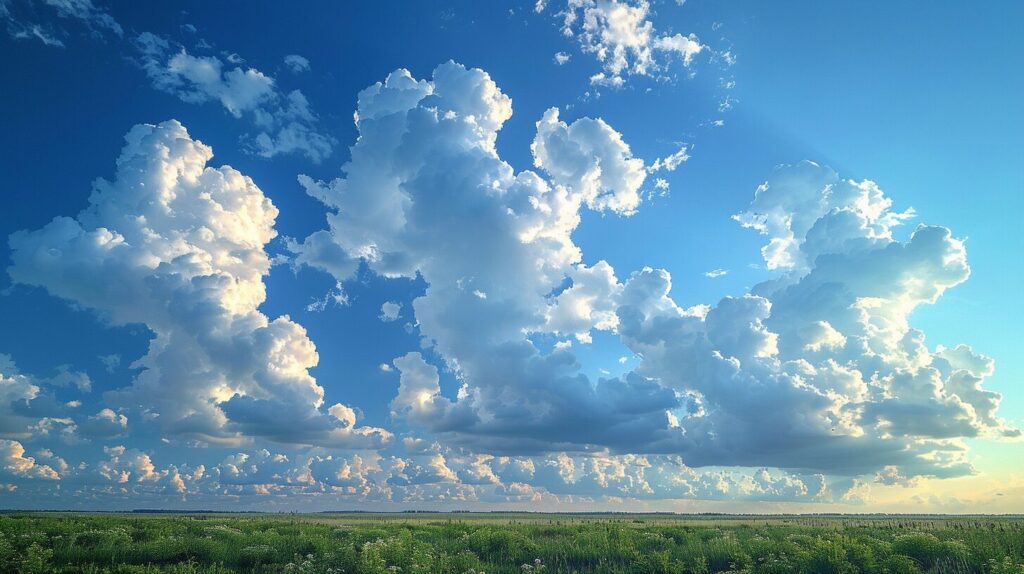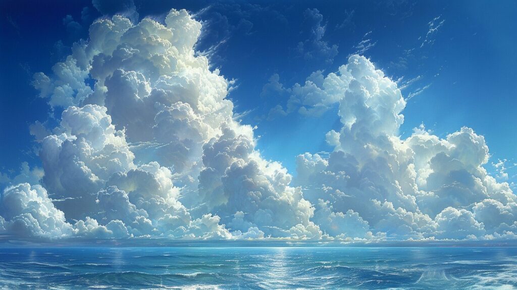 使用したプロンプトはこちら▼ <prompt> sky, clouds, blue, white --ar 16:9 --stylize 1000