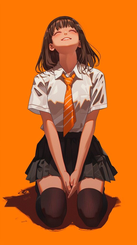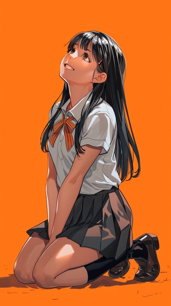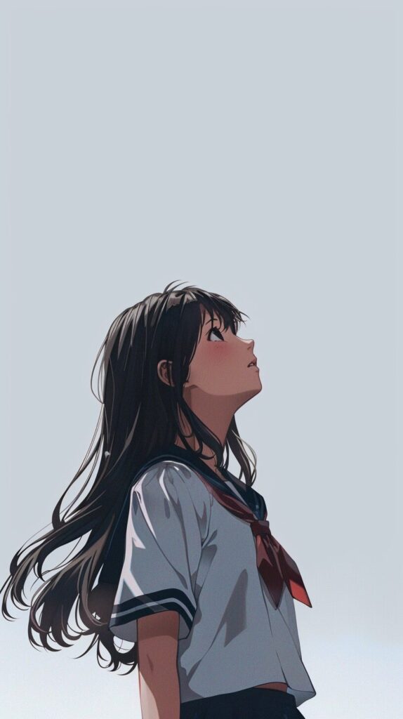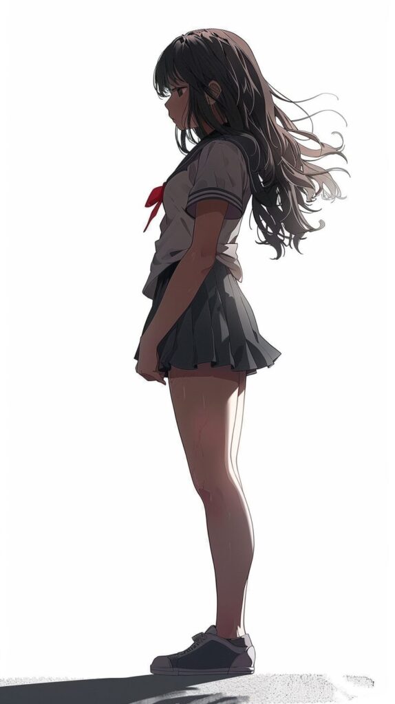 使用したプロンプトはこちら▼ <prompt> low angle, an anime high school girl, blank background --ar 9:16 --v 6.0