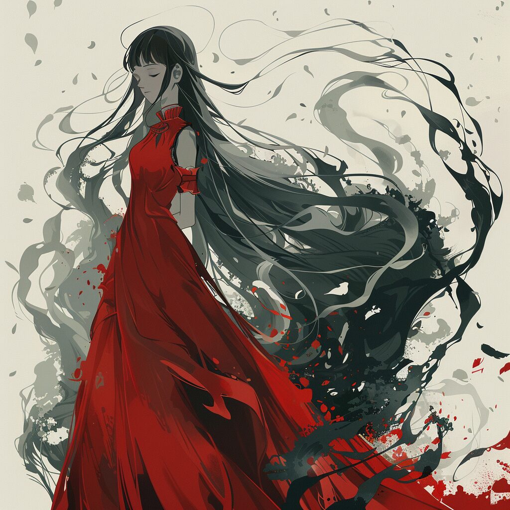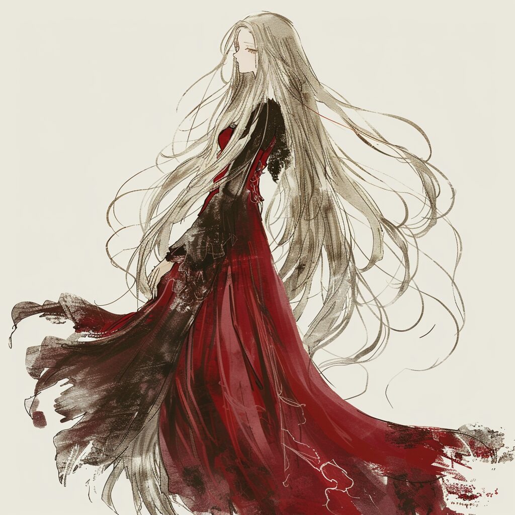 使用したプロンプトはこちら▼ <prompt> A girl donning a beautiful red dress and long flowing hair, echoing the style of Ken Sugimori. The composition is influenced by Grey Academia and Grandparentcore, employing dark white and light azure tones. Stylish costume design is accentuated with dark white and dark red elements, reminiscent of the aesthetic choices of Hayao Miyazaki. --style raw