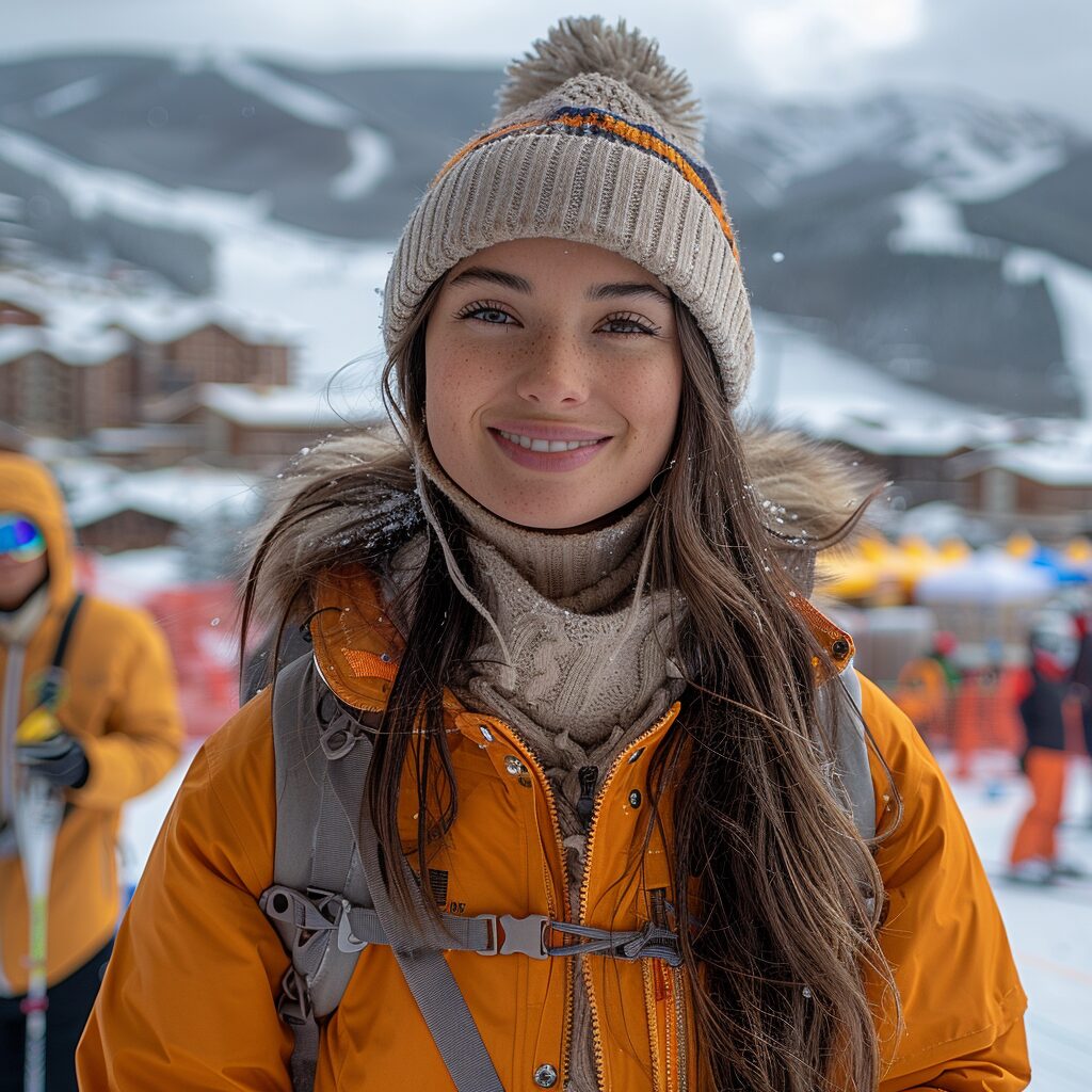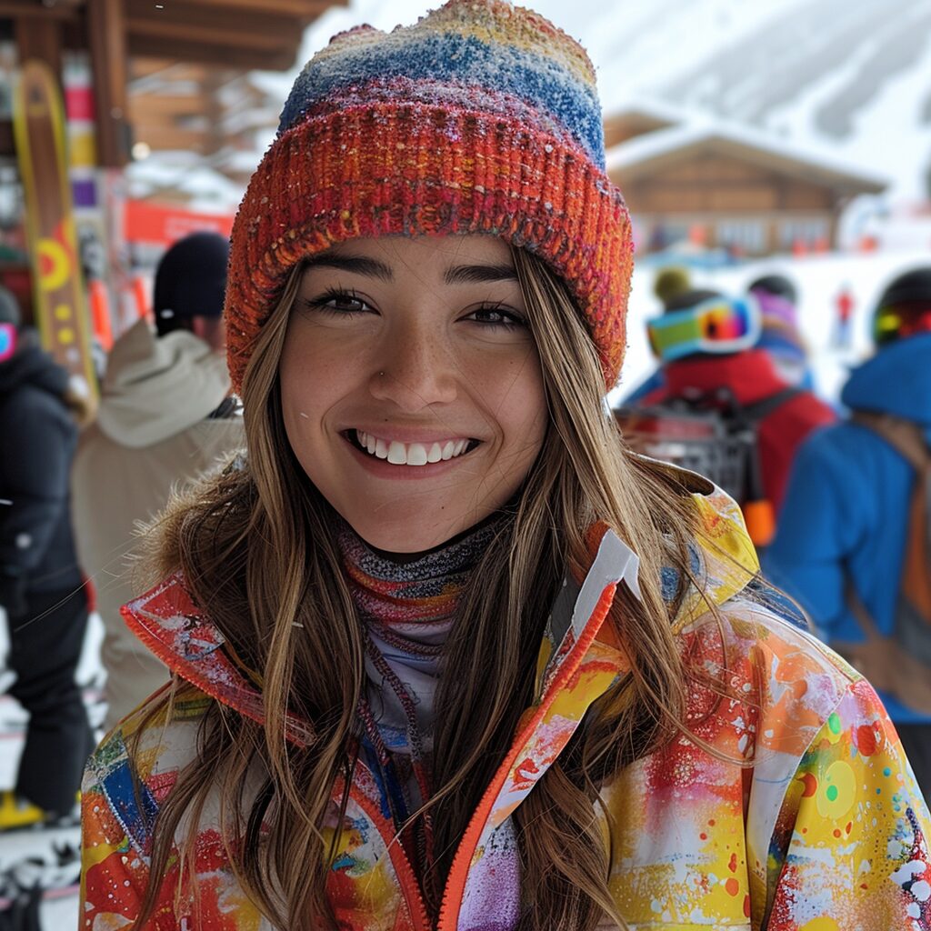 使用したプロンプトはこちら▼ <prompt> a girl who looks like alizee, wearing a rave fit, rave clothes, ski boots, a beanie, posing and smiling at a ski resort --stylize 750