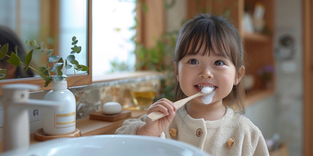 使用したプロンプトはこちら▼ <prompt> Cinematic, detailed morning routine photography, a well-lit bathroom setting, carefully composed to include both the girl's back and her reflection in the mirror. The 6-year-old Chinese girl stands in front of the mirror, brushing her teeth, her back to the camera. The shot is framed to capture her reflection clearly in the mirror, showing her concentrated face as she scrubs diligently, toothbrush in hand, with ample foam at her mouth and on the brush, highlighting the thoroughness of her action. The soft, natural light streaming through the window illuminates her and the bathroom, creating a serene and fresh atmosphere. Camera: Fuji GFX 100, Lens: GF 45mm F2.8 R WR, perfect for capturing the scene's intimate details and the dual perspective, Director/Photographer: Annie Leibovitz, Costume Description: Visible in the mirror, the girl's reflection shows her wearing a simple yet comfortable outfit, possibly a soft, light-colored bathrobe, emphasizing the normalcy and intimacy of the morning routine. The bathroom combines functionality with a touch of personal style, featuring clean lines, a neutral color palette, and maybe a few personal items or plants that add life to the space. The focus is sharply on the girl's activity, her reflection, and the contrast between the action of brushing and the stillness of the morning, creating a moment that's both ordinary and beautifully intimate --chaos 50 --ar 2:1 --style raw --stylize 950