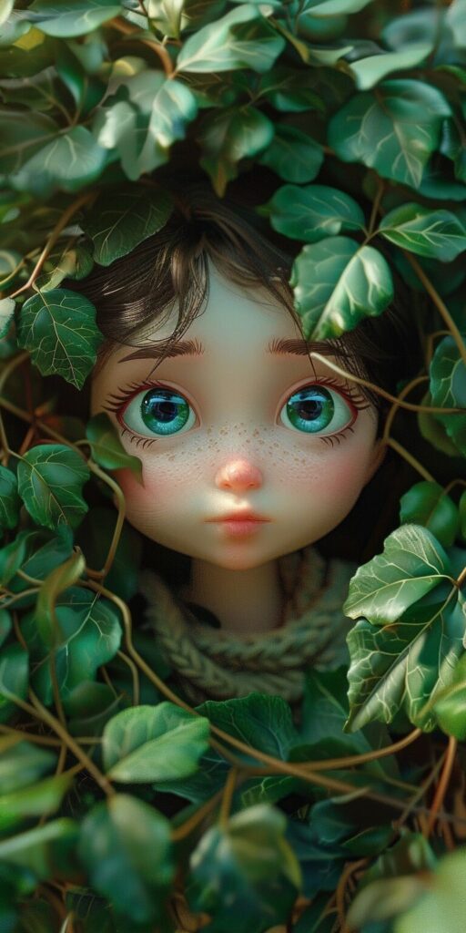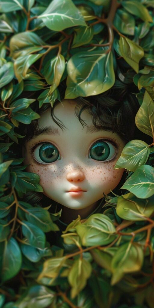 使用したプロンプトはこちら▼ <prompt> Long shot, full body, leaves covering, no sand, realistic, beautiful, big eyes --ar 1:2 --style raw