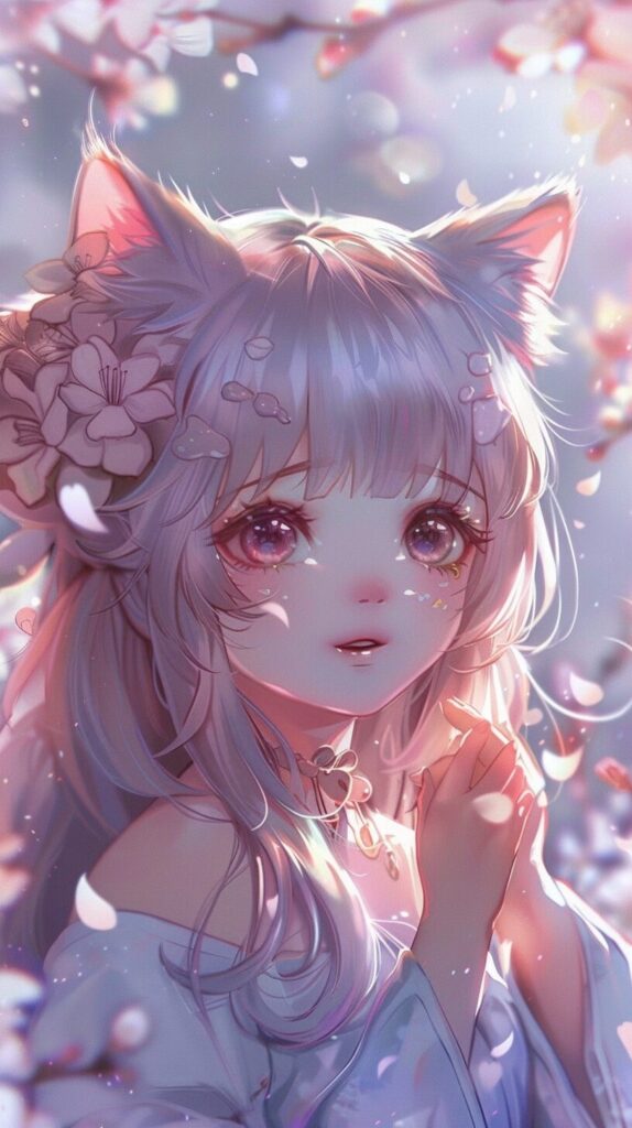 使用したプロンプトはこちら▼ <prompt> In this enchanting world of anime, a lovely cat-girl makes her appearance! With soft and fluffy hair, her cat ears stand tall on her head, radiating an aura of innocence and cuteness. The large, bright eyes sparkle with curiosity and joy, as if she is sharing her happiness with you. Adorned in an outfit featuring cat paw prints or colors reminiscent of a cat, she exudes a playful charm. Cherry blossom petals float around, creating a dreamlike atmosphere. The entire scene is filled with fairy-tale colors, providing a warm and serene feeling. --ar 9:16