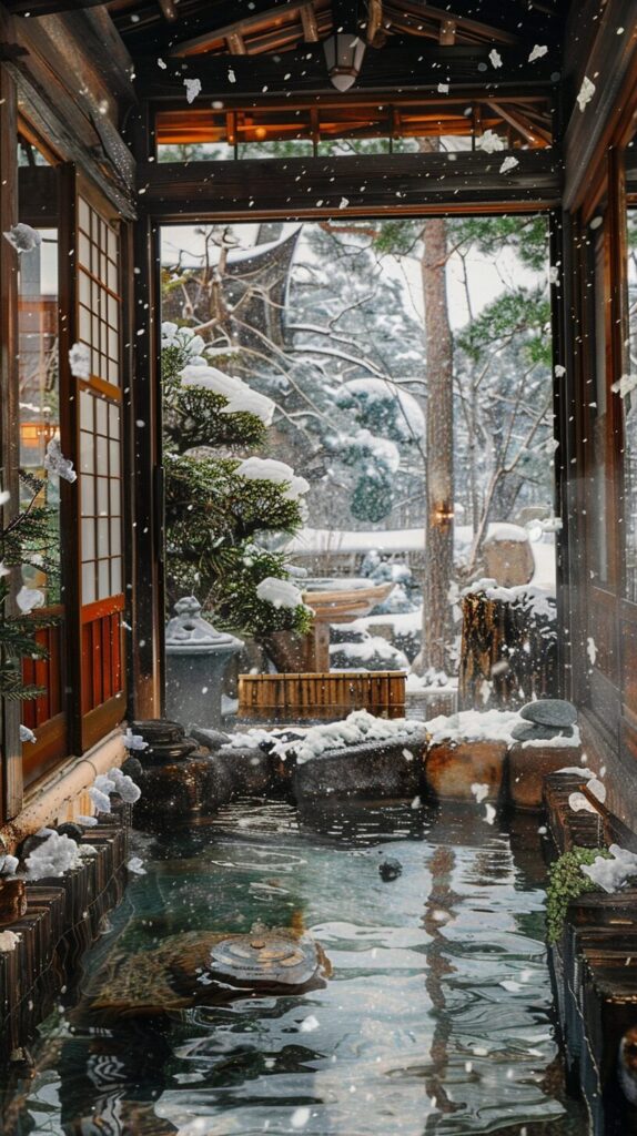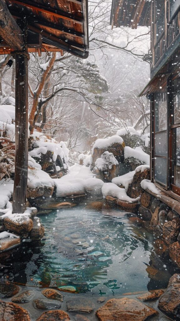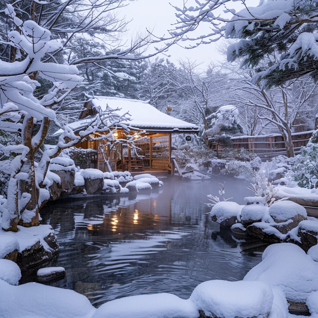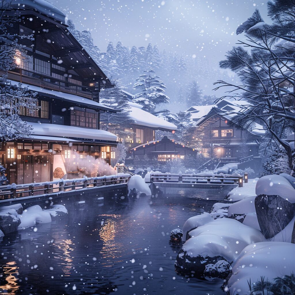 使用したプロンプトはこちら▼ <prompt> Japanese onsen in snow