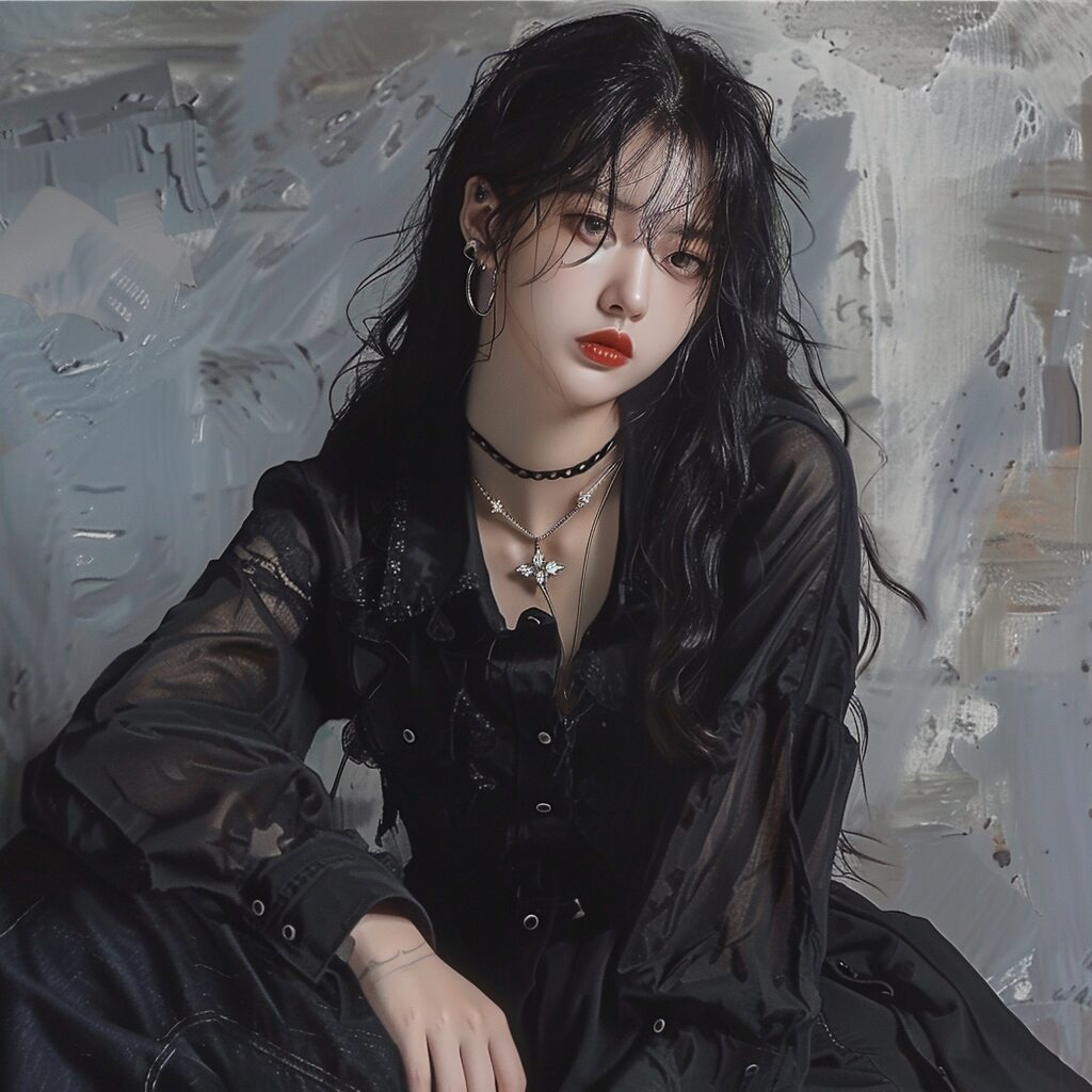 使用したプロンプトはこちら▼ <prompt> selfie of a cute kpop i d o l , , with long black hair with bangs, wearing Japanese techwear, high angle selfie backstage, hyperreal, --ar 1500:2333 --style raw --stylize 10